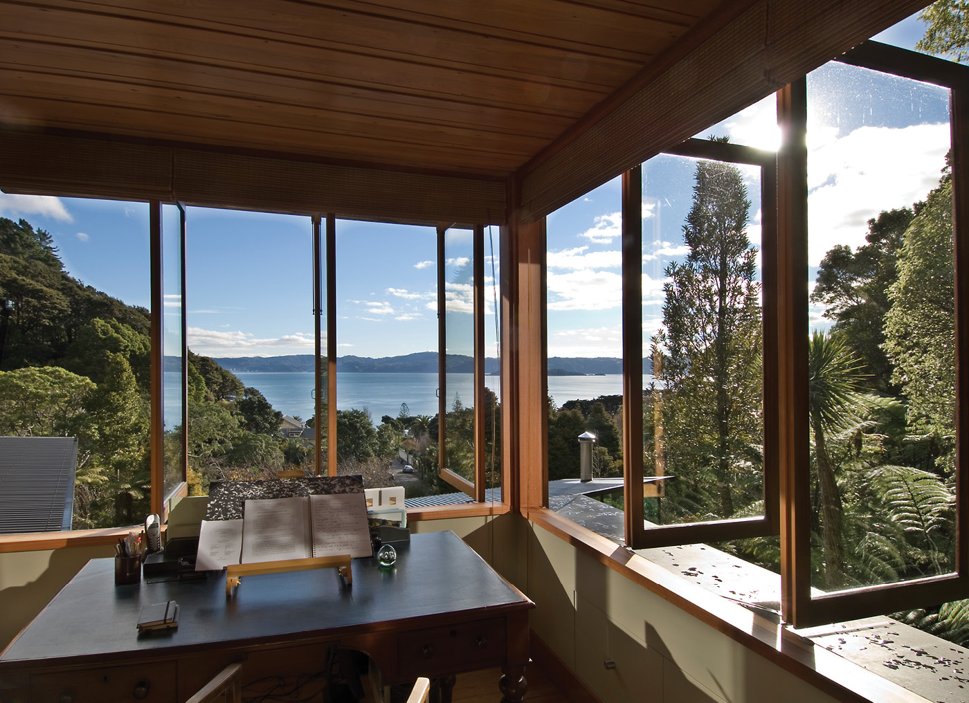 It is a site magnificent enough to make any architect nervous about the prospect of ruining it: an intimate embrace of native and exotic trees facing the moody waters of Wellington harbour, and tended by the same family of fanatical gardeners for a century. Returning to New Zealand after two decades in London, the current owners were entranced by its beauty and purchased the property in 2003. The only problem was that the existing home – a cumbersome 1940s weatherboard structure – all but ignored the glorious backdrop of green.