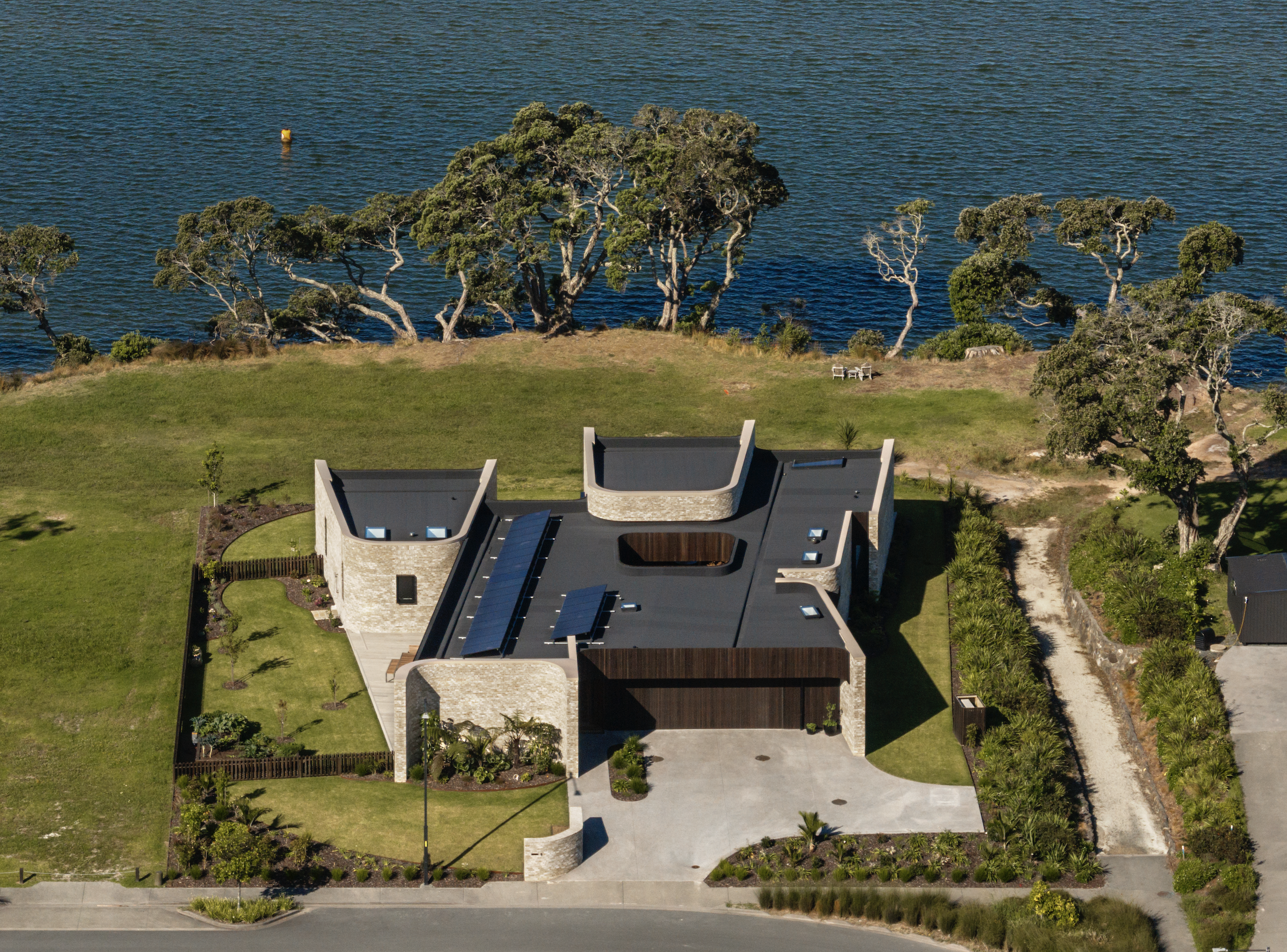 Conceived as a response to the wider natural environment, the home embraces it on many levels — some imperceptible and others grand. One of a handful of waterfront sections in a relatively new subdivision in Mangawhai, the site borders a public coastal walkway that winds along the edge of the estuary.