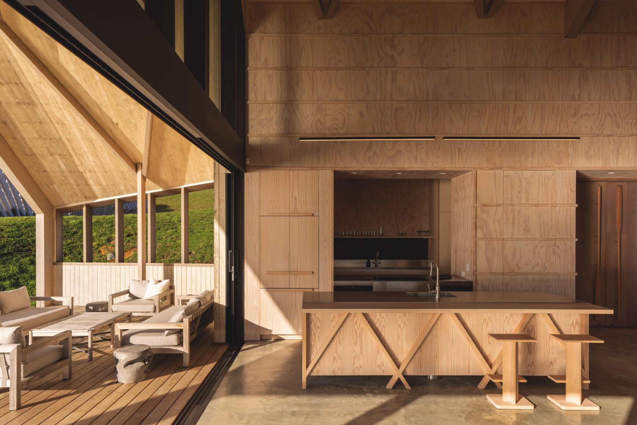 Echoing the geometric asymmetry of its counterpart, the house was conceived as a sanctuary. Mawhiti means ‘escape’, and the clarity of space within resonates wholly with its name.