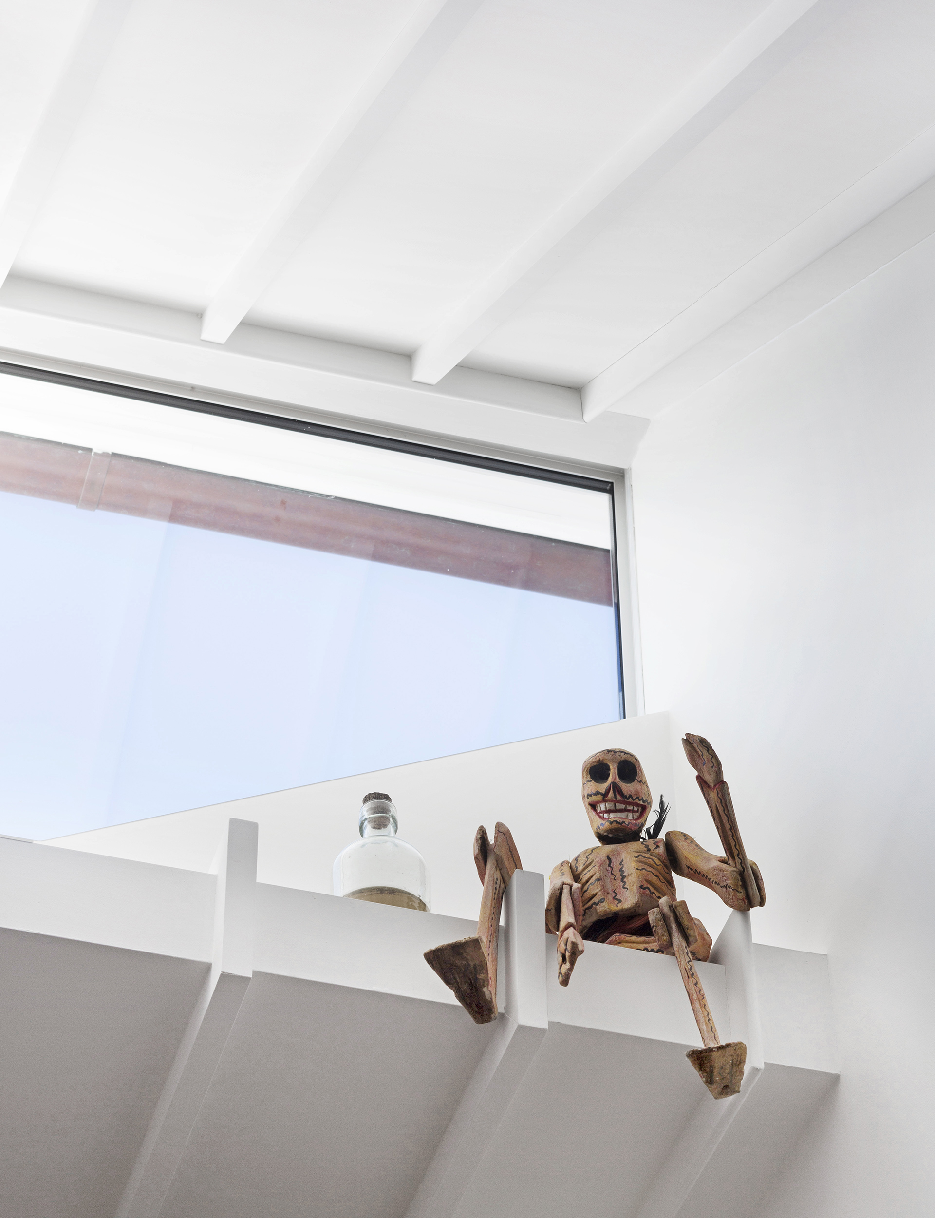 There’s a playful quality to the way you manipulate scale and light here. Thanks. Light was particularly important and a driver for what we did and we had fun with it – skating light along ceilings and down the rough-formed concrete. Windows are all varied and spread throughout the house, central and external, high and low, so the light changes utterly during the day.