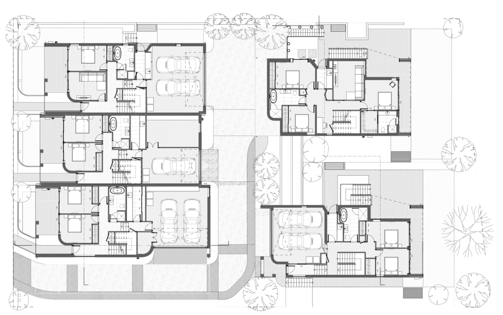 A persuasive example that multi-units do not have to equate to homogeneity. Through thoughtful planning at both urban and domestic scales, this development creates not only a collection of slightly different houses but a genuine sense of community.