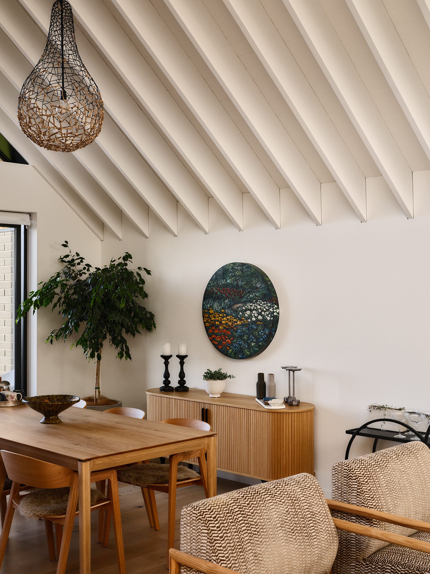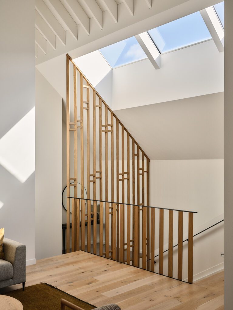 These details, combined with other moves, such as the expression of the rafters and the use of skylights, create spaces that feel particularly characterful — with light a key protagonist.