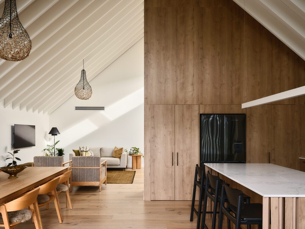 There is a familiar language at play here. A hint of Stevens Lawson’s earlier work can be felt in the composition — echoes of the dramatic material interplay of Rawene House (2018), and the sculptural clarity of Mawhiti (2021). Here, those ideas are distilled and translated into a multi-residential context; architecture that feels both generous and assured.