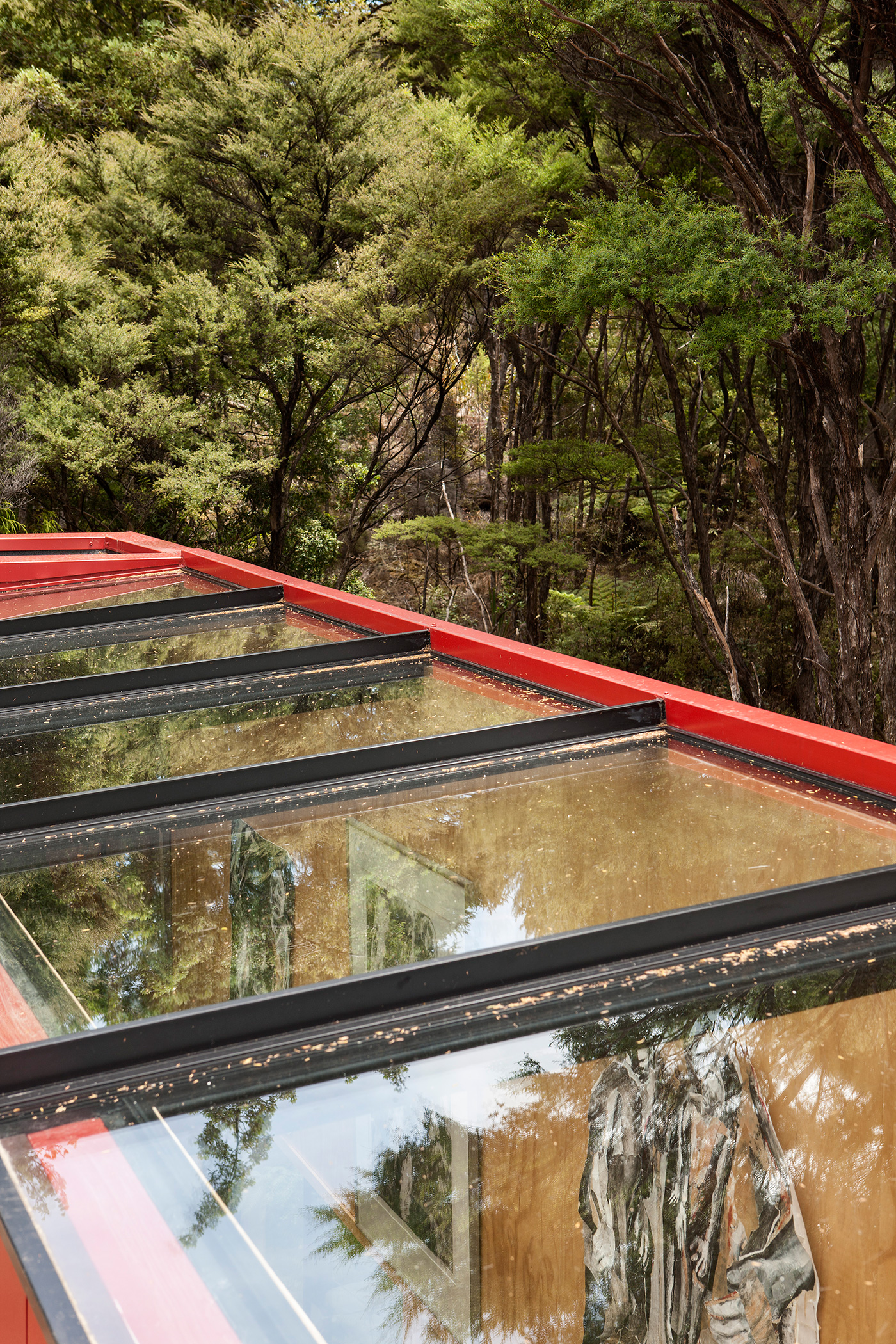 Thank the design deities that CCCA’s original idea of a black box was dispensed with. Rescue came cloaked in a red coat, a corrugated-iron cladding, which effectively dodged the drab. Convincing the owners to take this colourful road less travelled was easy; convincing the council was a different matter. Crosson: “We argued that ‘barn red’ was part of the district plan on Waiheke Island, so why not here?”