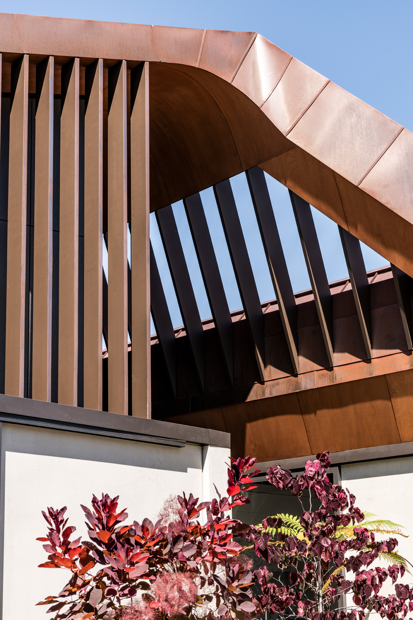 A basic descriptor of the home goes something like this: three concrete pavilions tied together by a sculptural copper form. Of course, it’s not that simple.