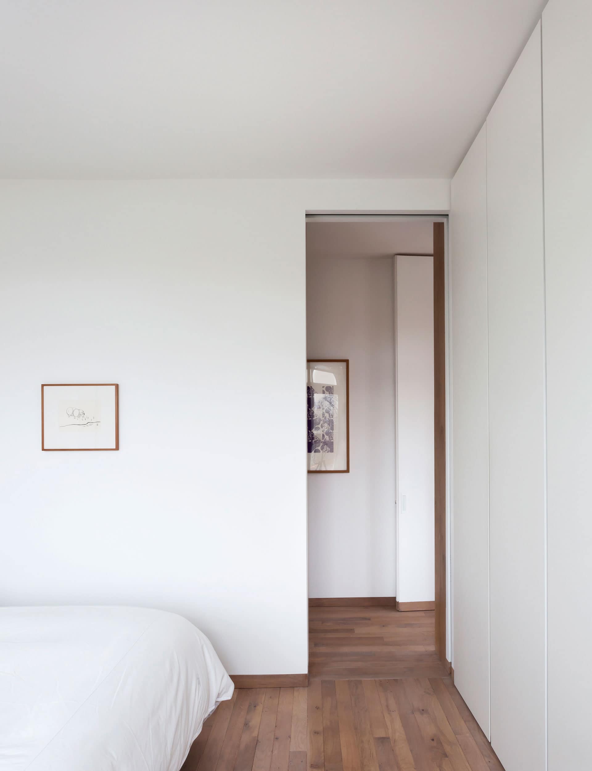 The scale and tricky layout of the space were actually why Alan and Pala drafted Reid in for help. The edifice, originally built as a pub, had lain unused after World War II before being turned into flats in the 1980s. The couple’s apartment was largely open plan with all rooms enjoying the view, but it didn’t work for a young family. The bedrooms were positioned off the main living area, so Alan and Pala had to tiptoe around after their daughter had gone to bed. “We had a flat that was 140 square metres and we were really only using 55 square metres of it. It felt like we were always on a corridor to somewhere,” says Southan. The bathroom was off the glazed entrance lobby, which felt exposed to the street. “We never really settled – and then Giles came along.”