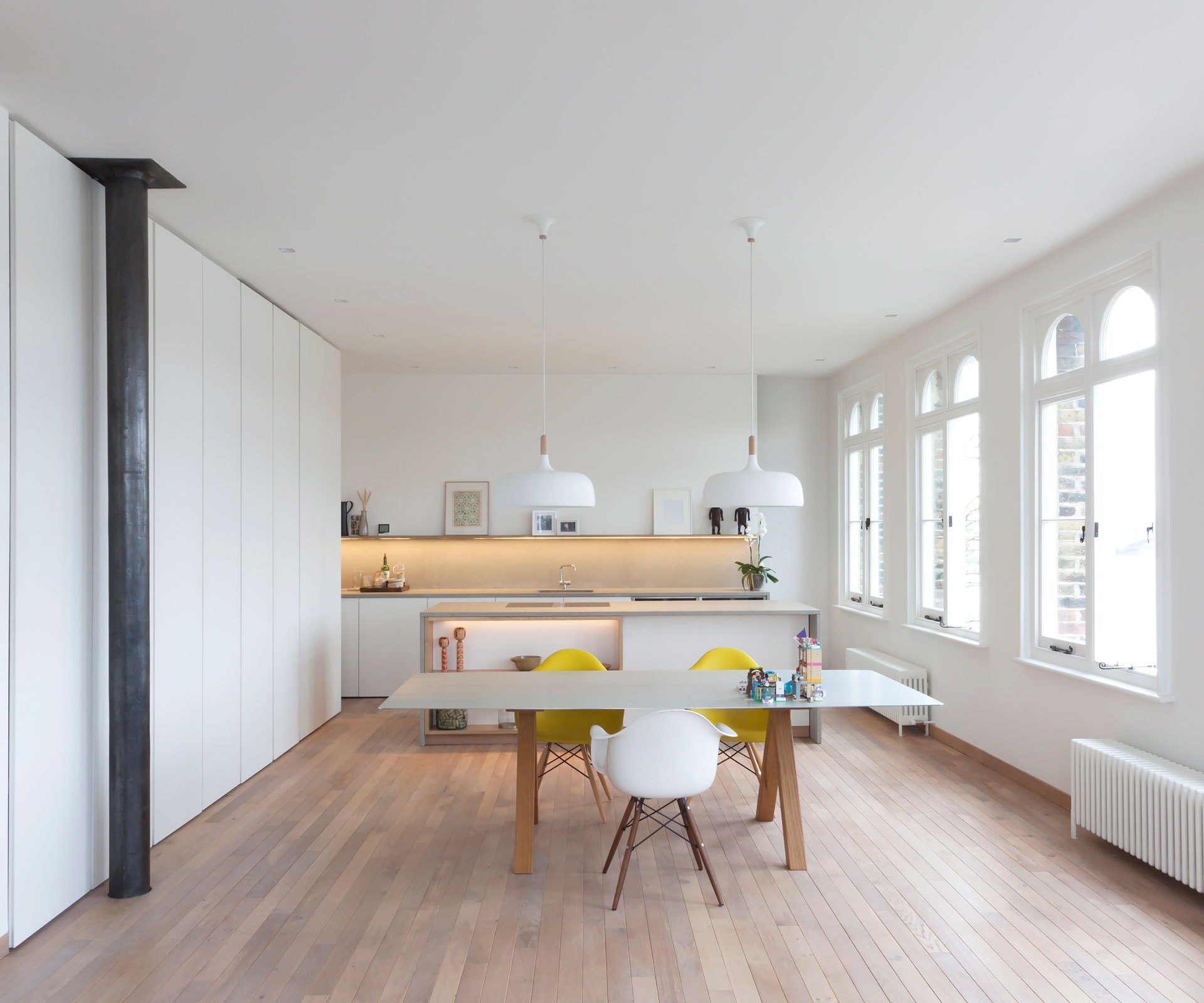 That on a good day, you can look due east to the city with glimpses of the Shard from this property in southwest London is a strange twist of poetry. New Zealand architect Giles Reid devoted seven years of his life to the UK’s tallest building, while working as part of Renzo Piano’s team. After such a mammoth task, Reid took on a slightly different riverside property 16 kilometres downstream: the renovation of this third-floor apartment in a Victorian building for owners Alan Southan, his partner Pala and their seven-year-old daughter. Positioned on a quiet bend of the Thames with the yelps of rowers the only interruption, the peaceful property could not be more different from the steel-and-glass behemoth further up the river. “It was quite a scale shift,” says Reid, deadpan.