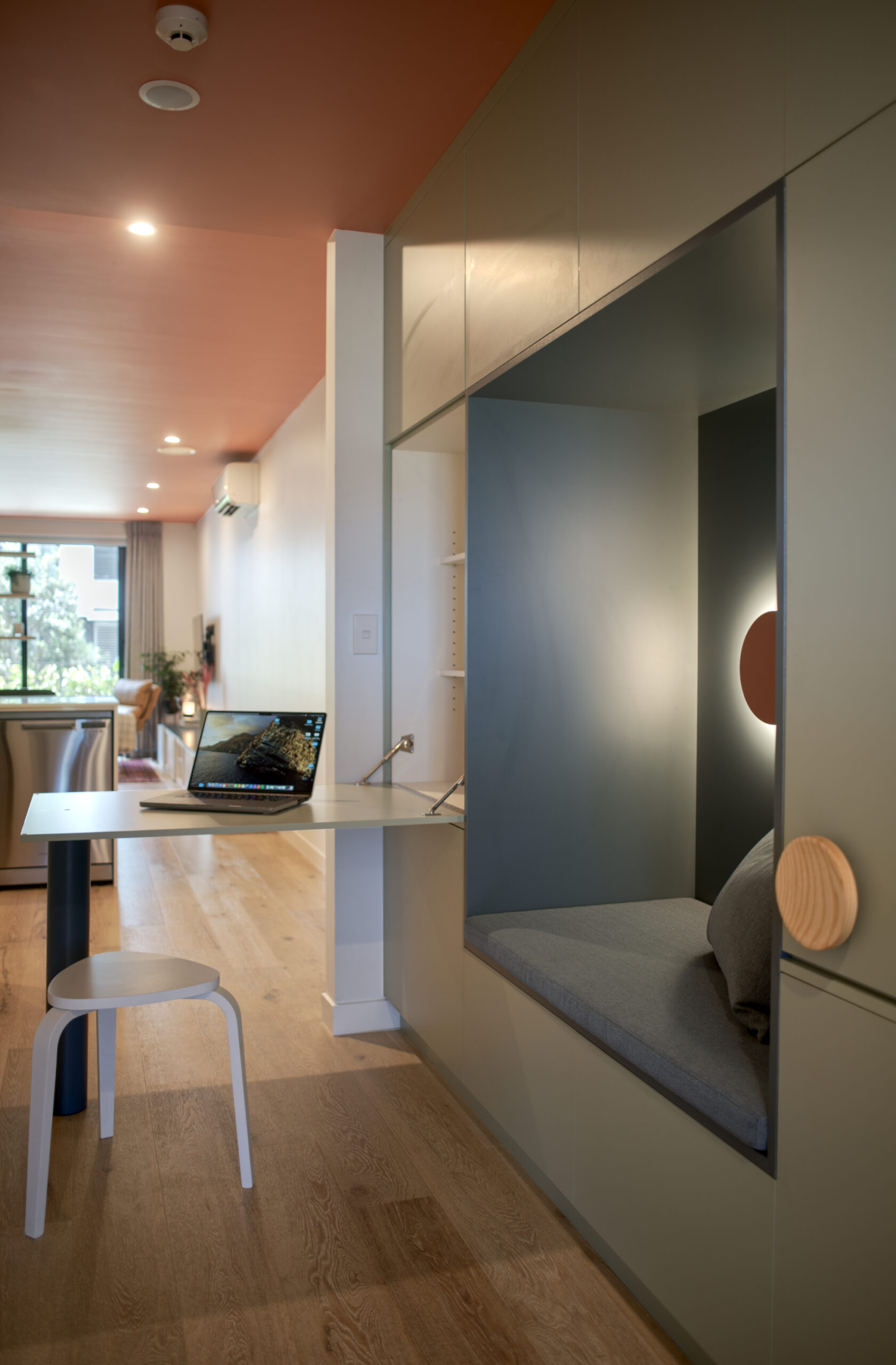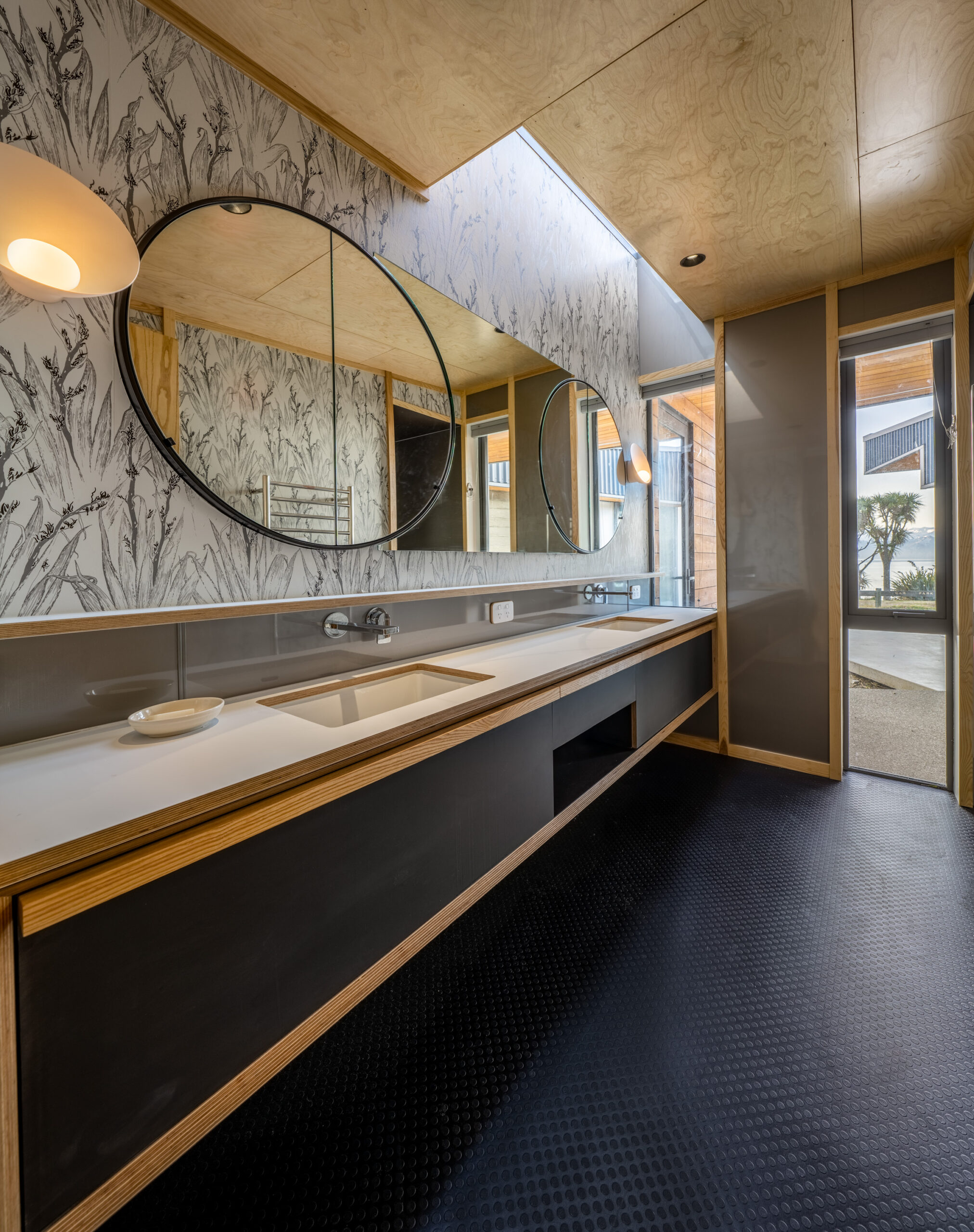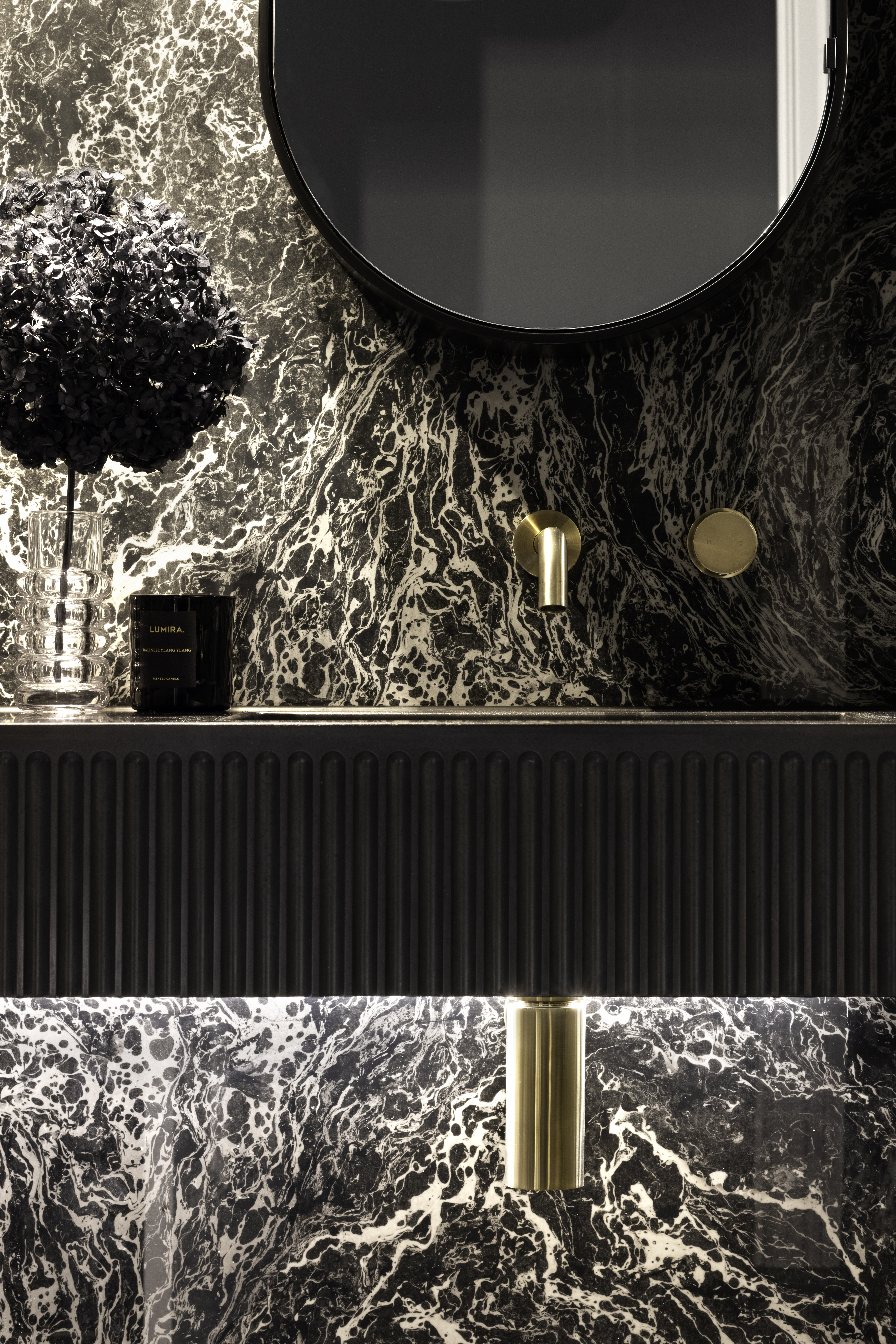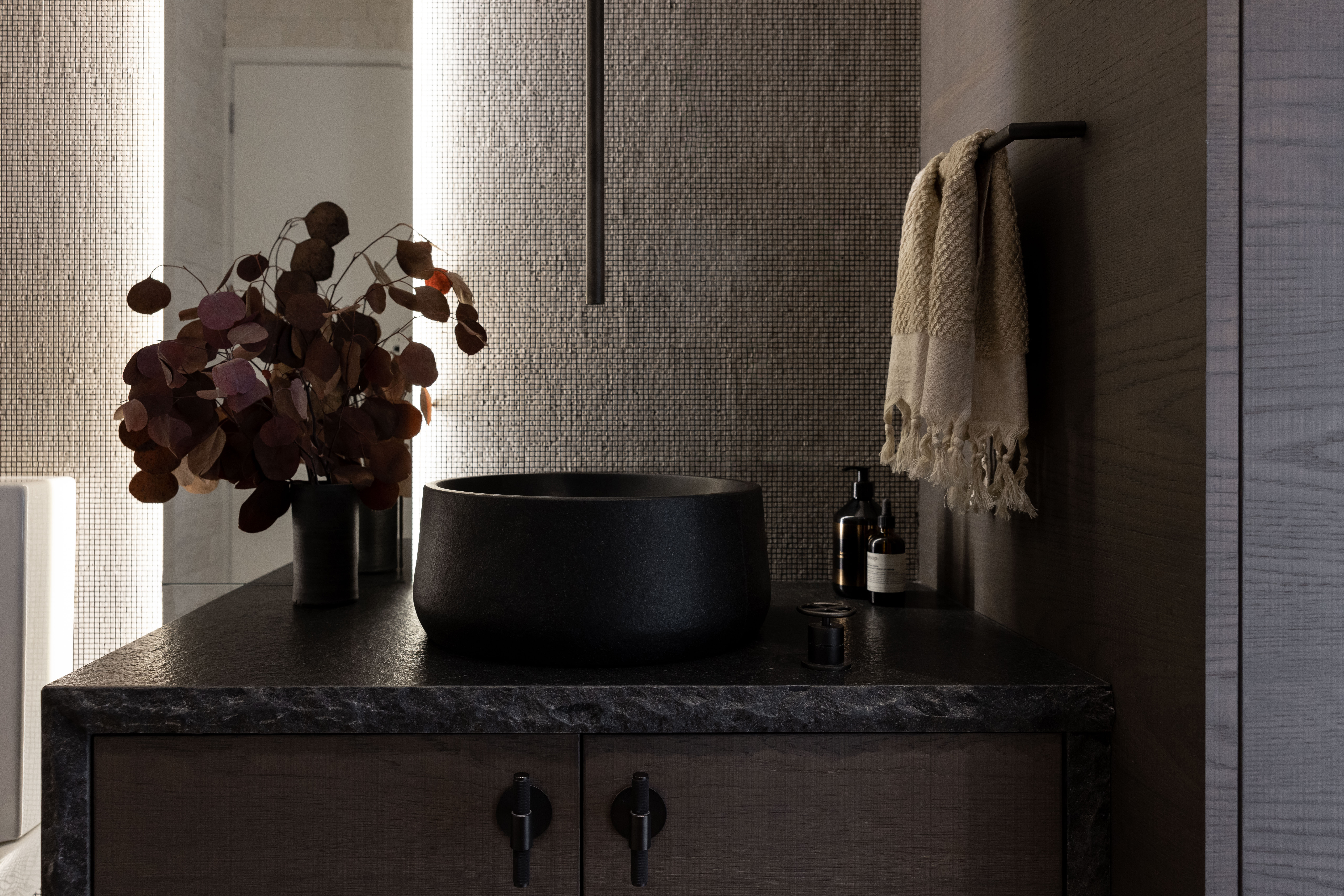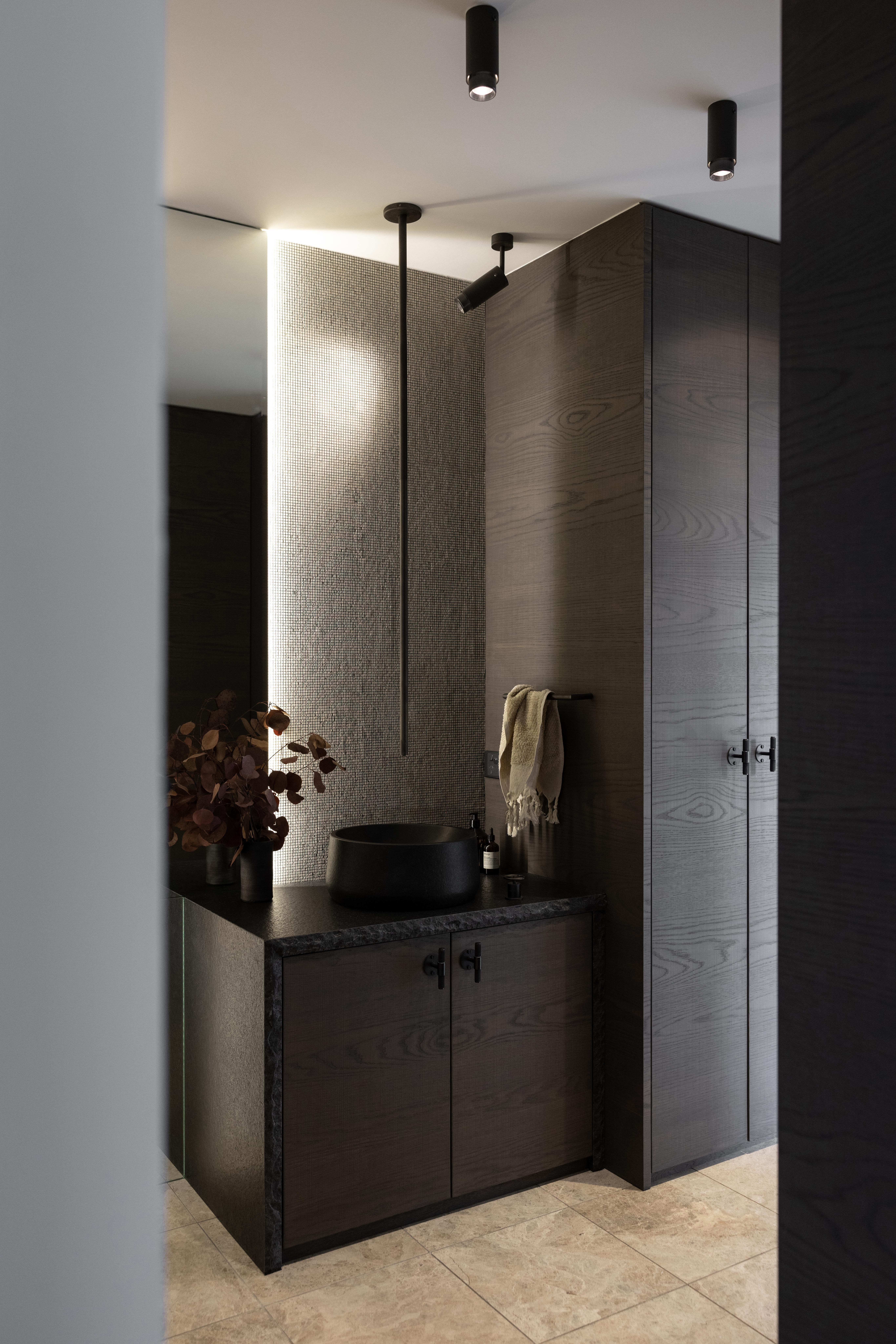 Compact but mighty. An intelligent layout has been devised for an otherwise complex space. Great lighting and textures ensure the space is not just practical but also beautiful.
