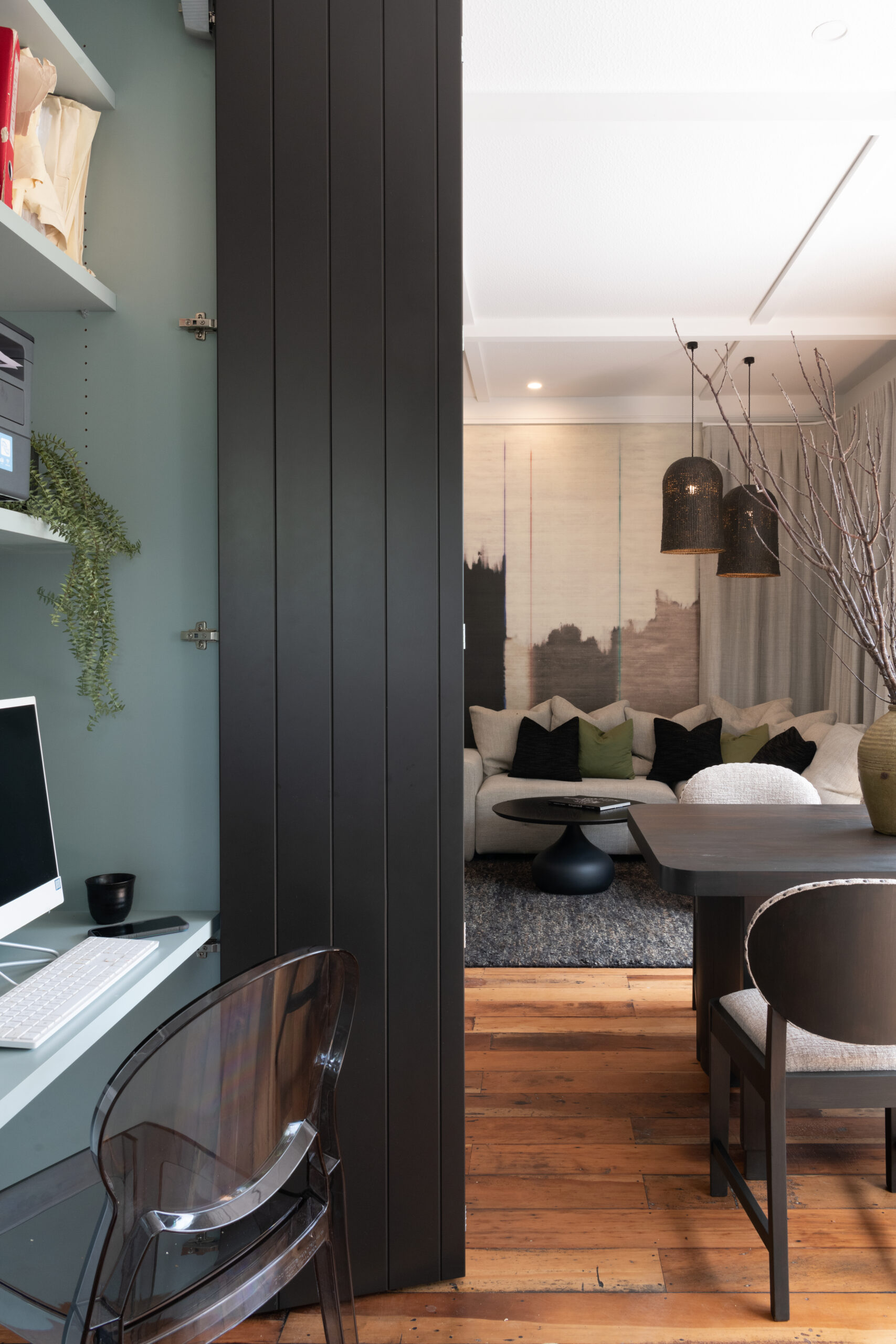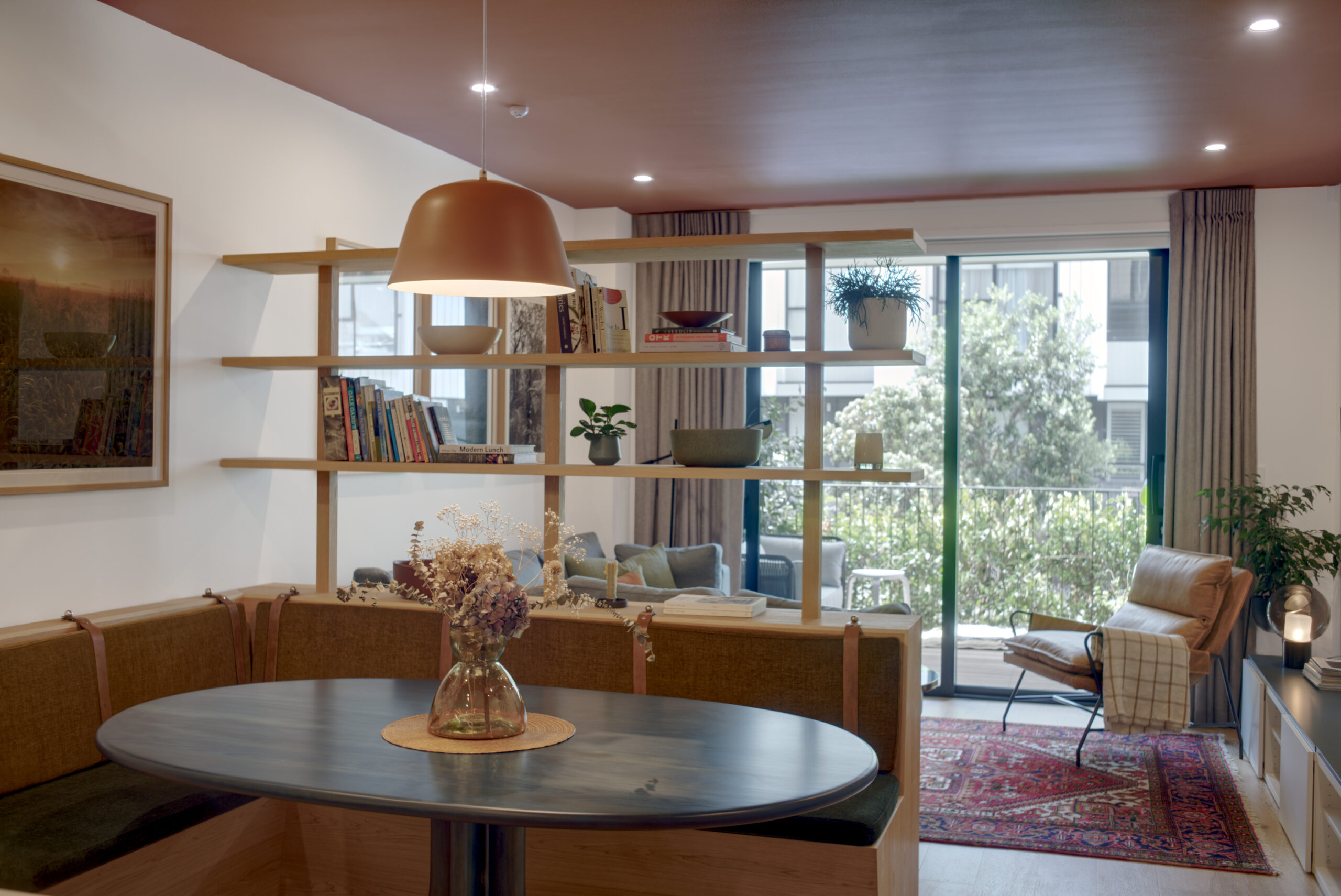 Proof that apartment living does not have to equate with sterile or white interiors. This space has been reimagined with warmth and hospitality in mind, creating an inviting atmosphere of relaxation and calm. Personality and intrigue are carefully balanced and, although colour is generously used throughout all spaces, it remains cohesive and relevant to its furniture, materials, light — both natural and otherwise — photography, and other interior choices. The project’s boldness and joie de vivre are highly commendable.