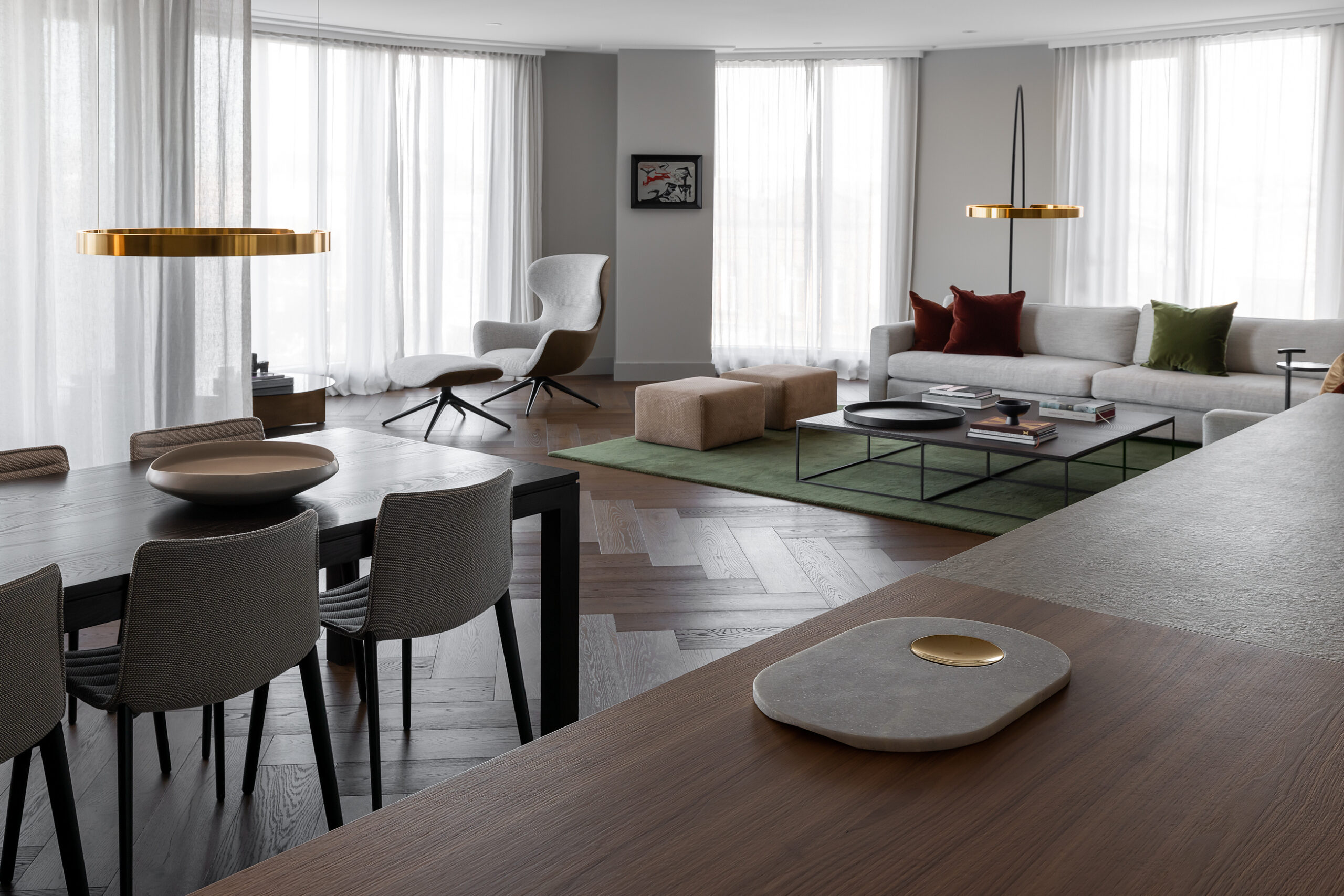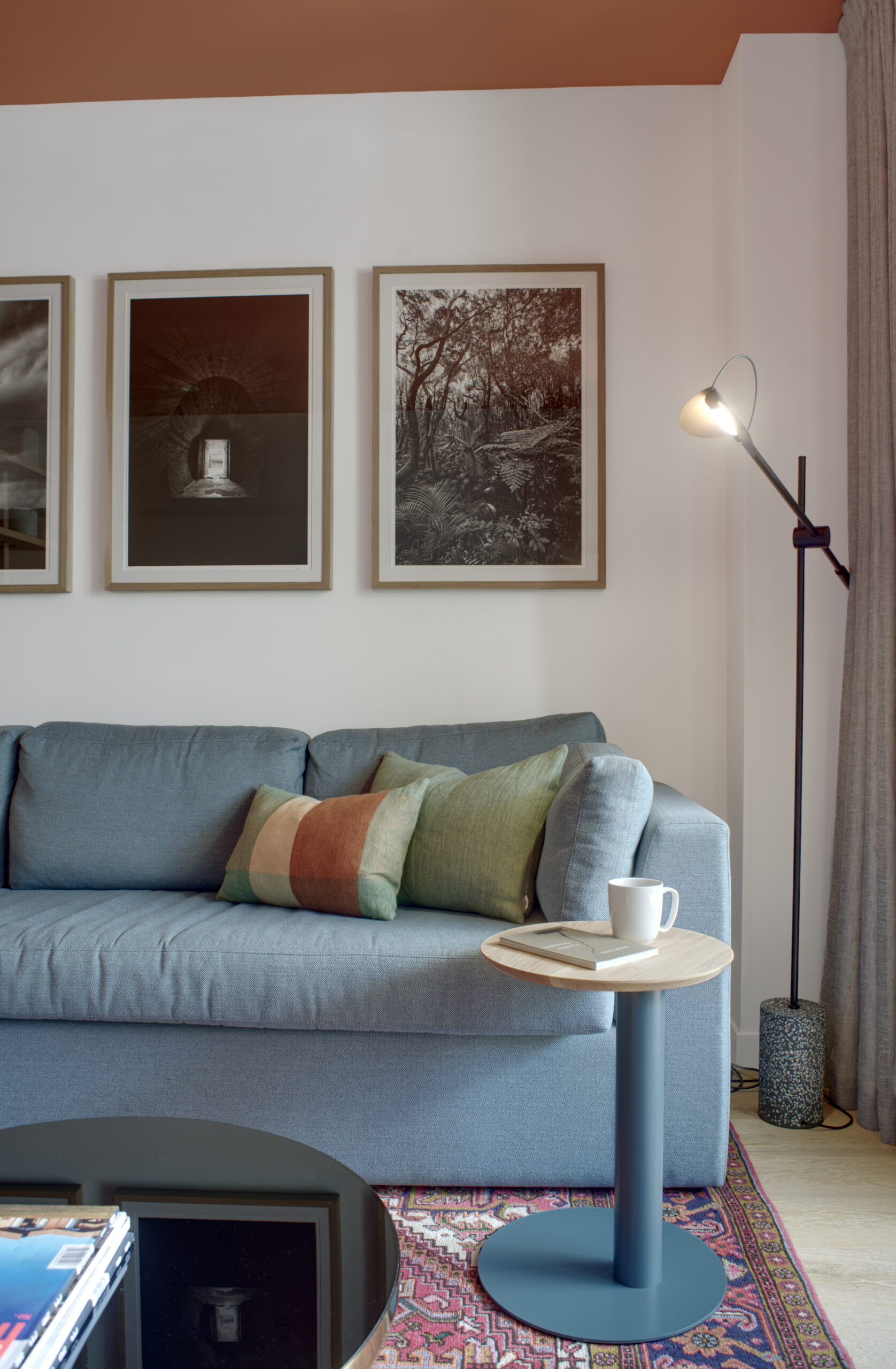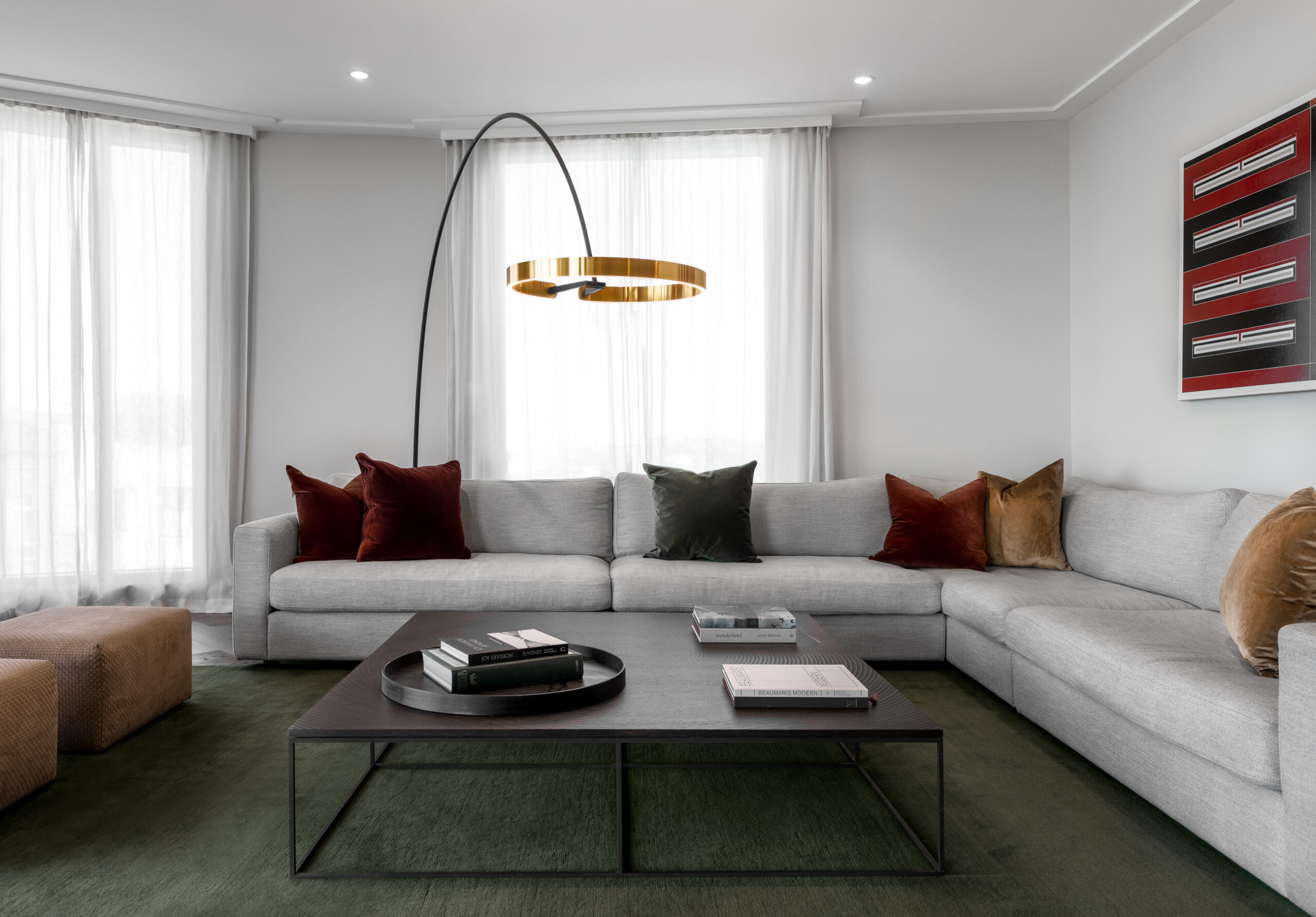 Luxury city hotel mood with added personality and sophistication. Furniture, art, and lighting have been meticulously curated to counterbalance low ceiling heights and floor size restrictions. Restrained but bold use of colour ensures the ‘hotel’ vibe tips in favour of personality rather than homogeneity, while exceptional furniture selection and zoning offer variety within a restricted floor-plate. Mature, minimalist, yet totally urbane and enticing.