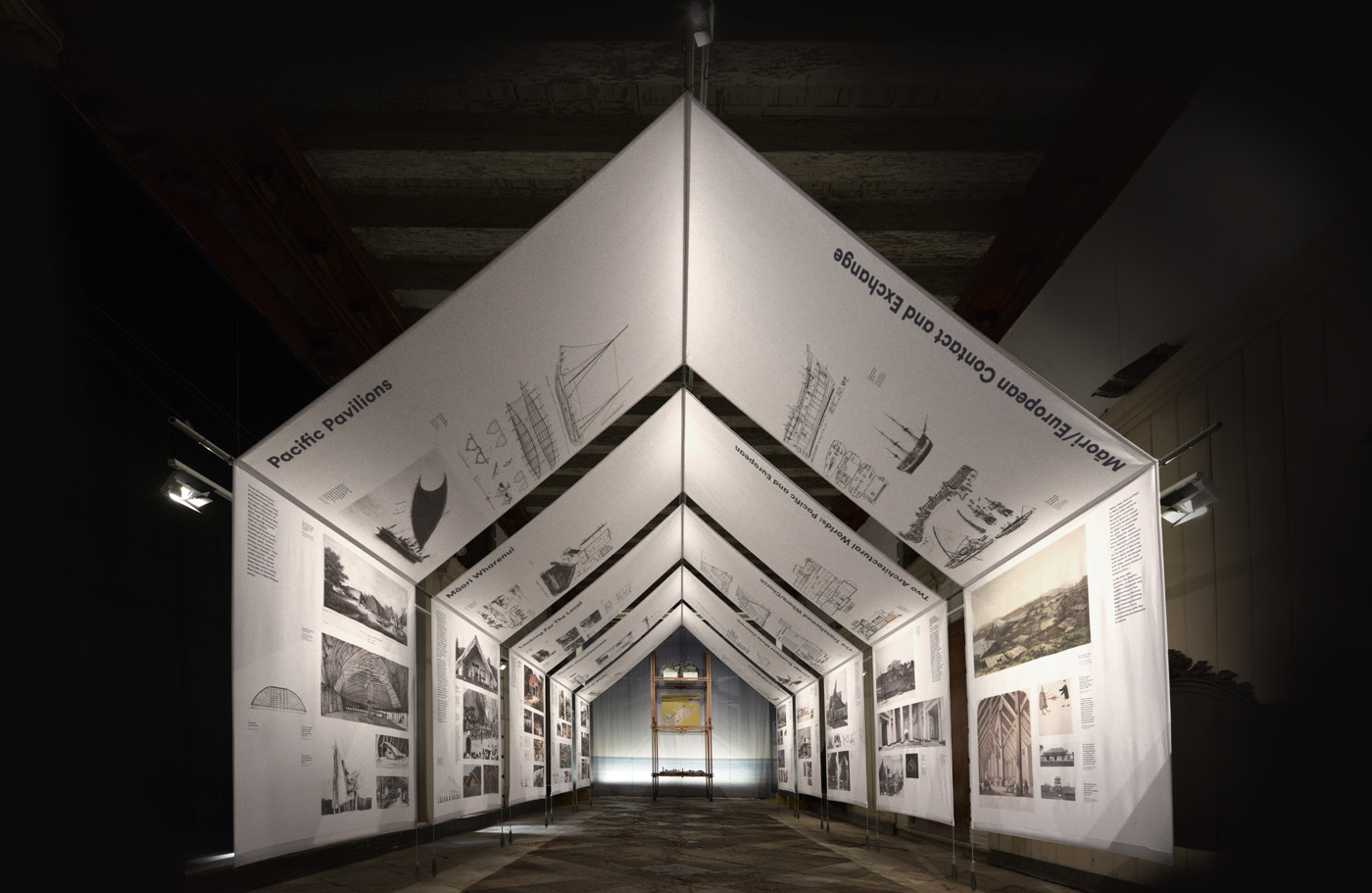 John Walsh The exhibition, with its tent-like centerpiece and just-carved whatarangi, looks very ‘Pacific’, especially in the context of its venue – the ground floor of a building that has been standing in Venice for almost as long as New Zealand has been inhabited. And the lightweight ‘Pacific’ form of the New Zealand pavilion aptly illustrated the argument presented by its creative director, David Mitchell. Biennale Director Rem Koolhaas had asked national pavilions to address the theme Absorbing Modernity: 1914-2014. Does modernity mean homogeneity? Mitchell’s exhibition proposes there is something different about New Zealand architecture, and this difference is attributable to Pacific inheritances and influences. Visitors to the exhibition – journalists and architects, tourists and locals – seem to understand the story being told. The pavilion’s opening events were much appreciated. They were made special by Māori welcomes led by Rau Hoskins – one of the creative team – and Rihi Te Nana.