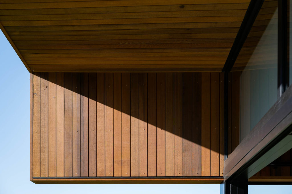 To the west, large eaves extend out to shelter the glazing from the summer sun and allow the house to perform thermally year-round.