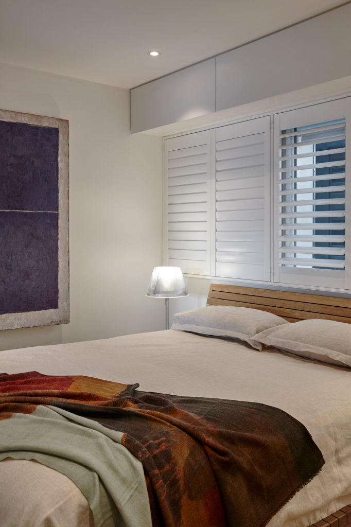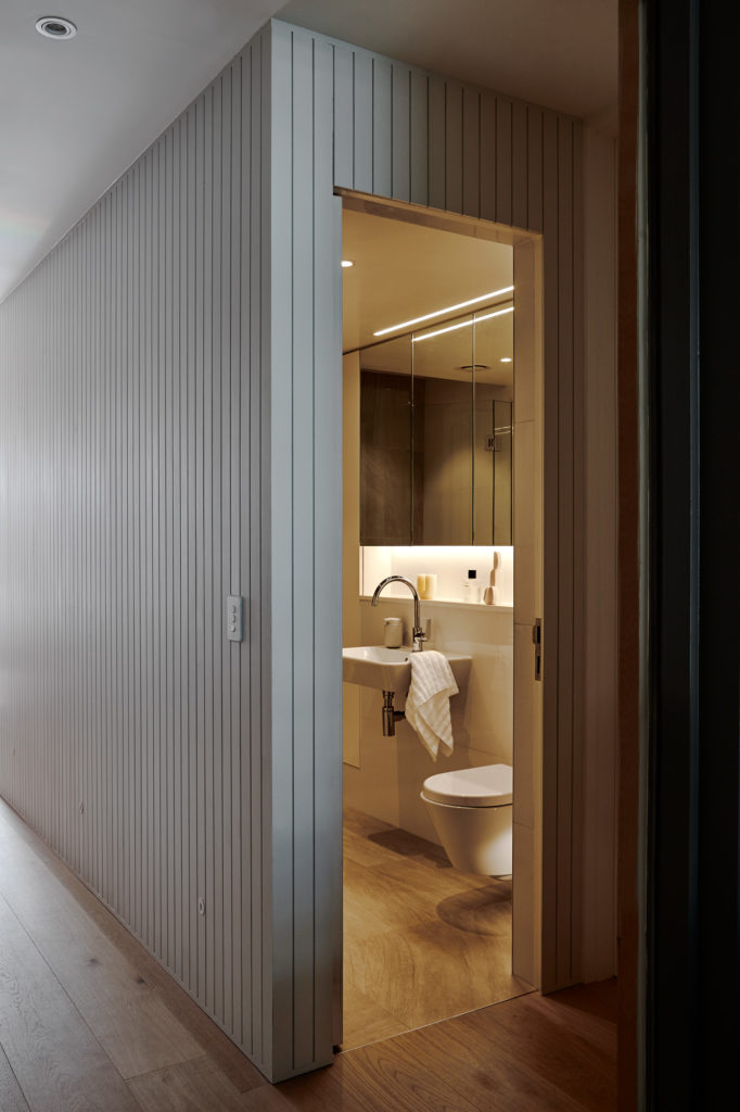 Maintenance aside, aspects of the layout were puzzling. One-and-a-half bathrooms in a 65m², one-bedroom apartment struck both owners and architects as somewhat over the top. The space had been highly compartmentalised, which affected circulation flow and, in turn, led to a “bedroom [that] felt trapped and got little fresh air … it was a bit stuffy”, says the client. There was also an issue with lack of storage.
