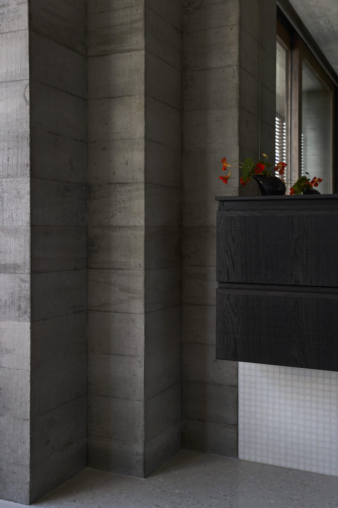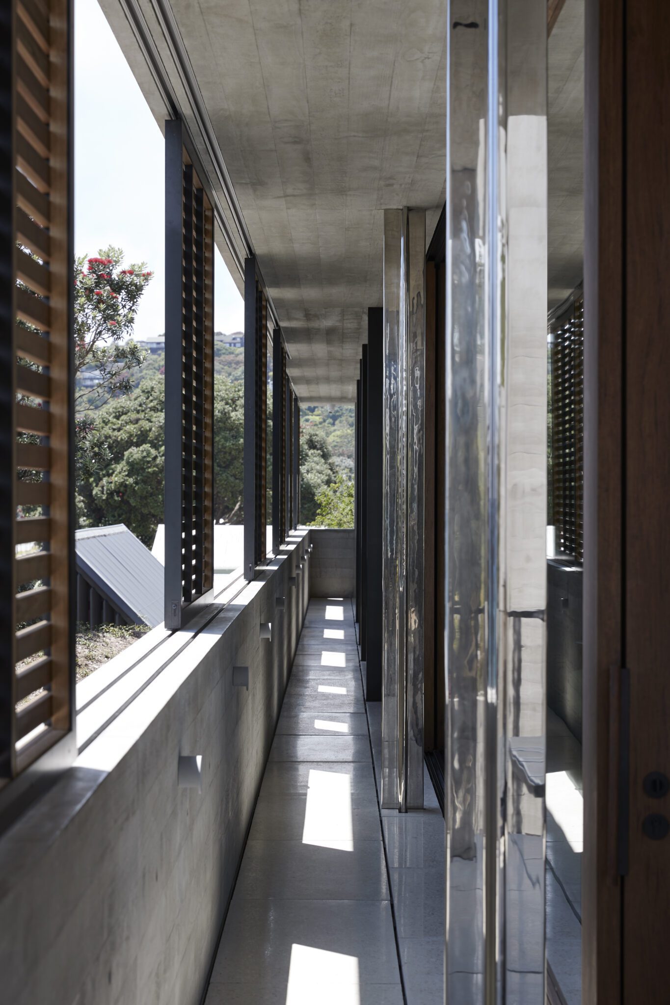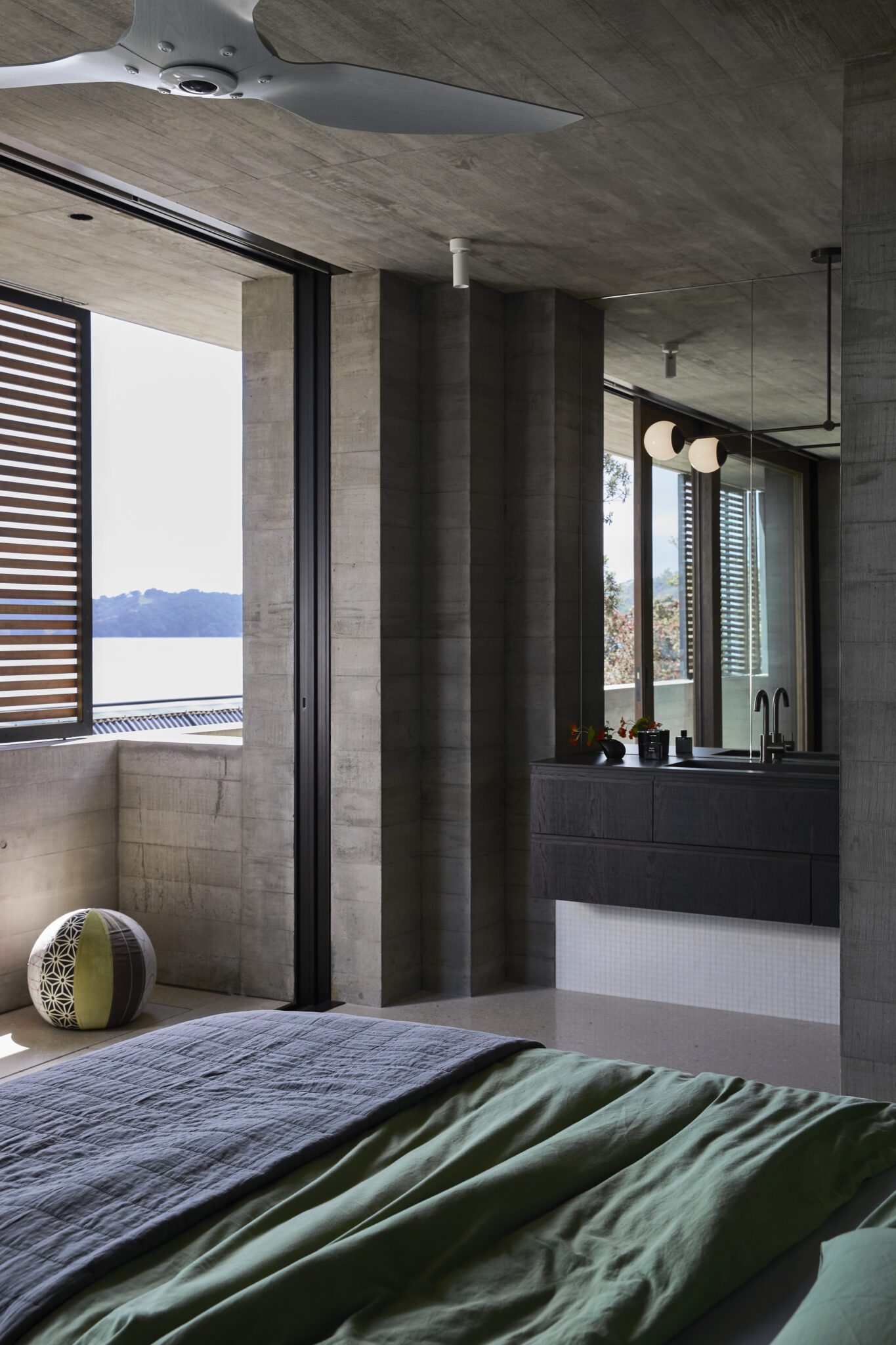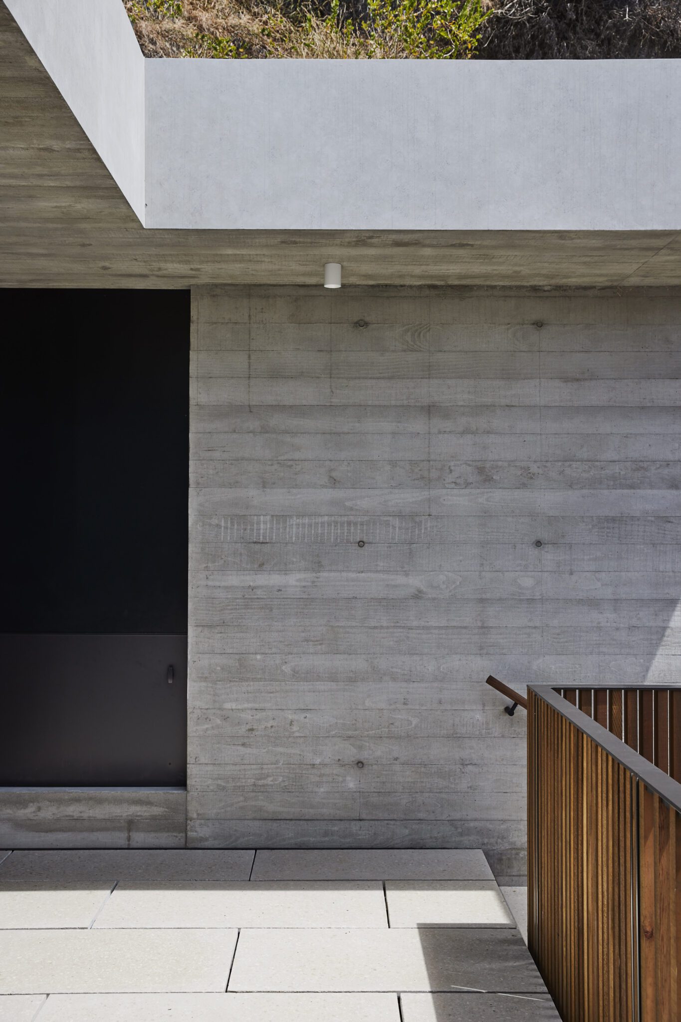 The internal concrete varies between in situ with textural board-formed patterns and polished; there are accents of beautiful rosewood timber, and no surface has been left to chance.