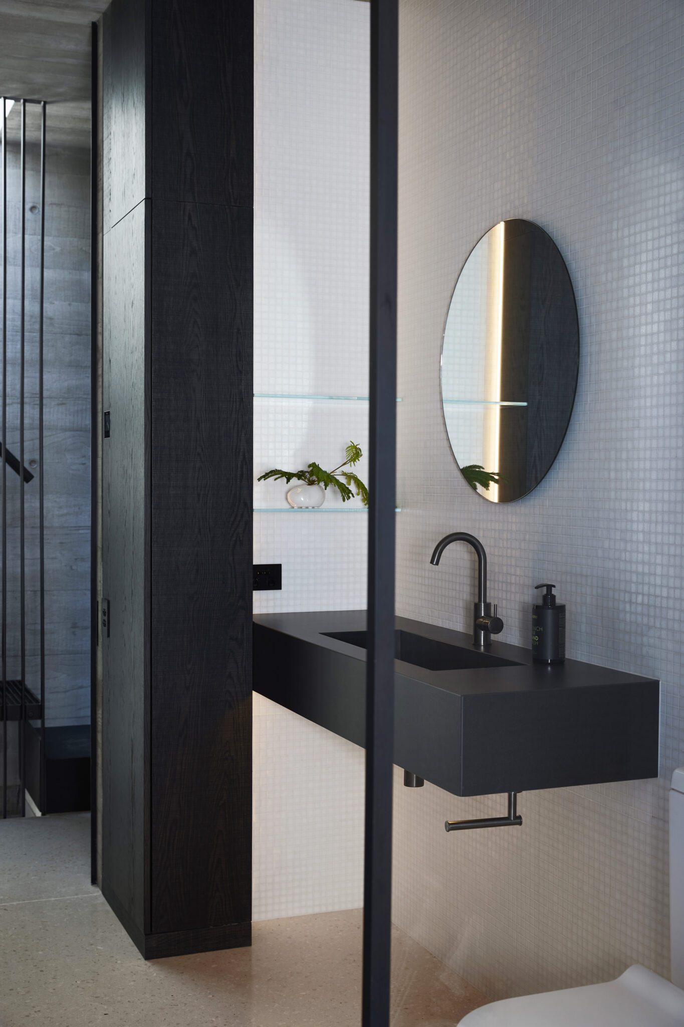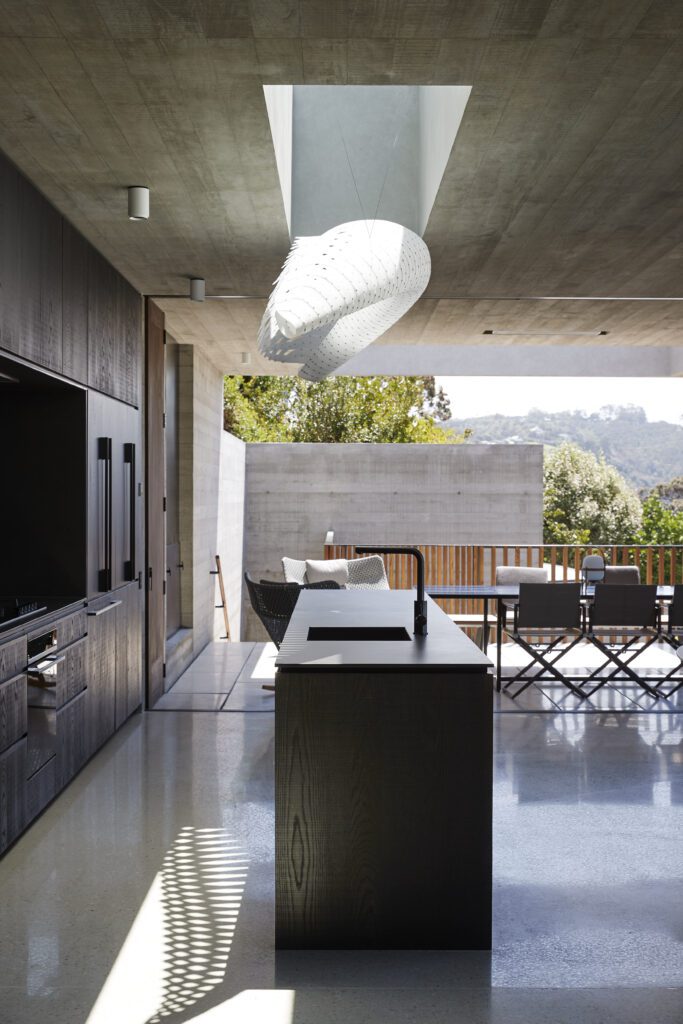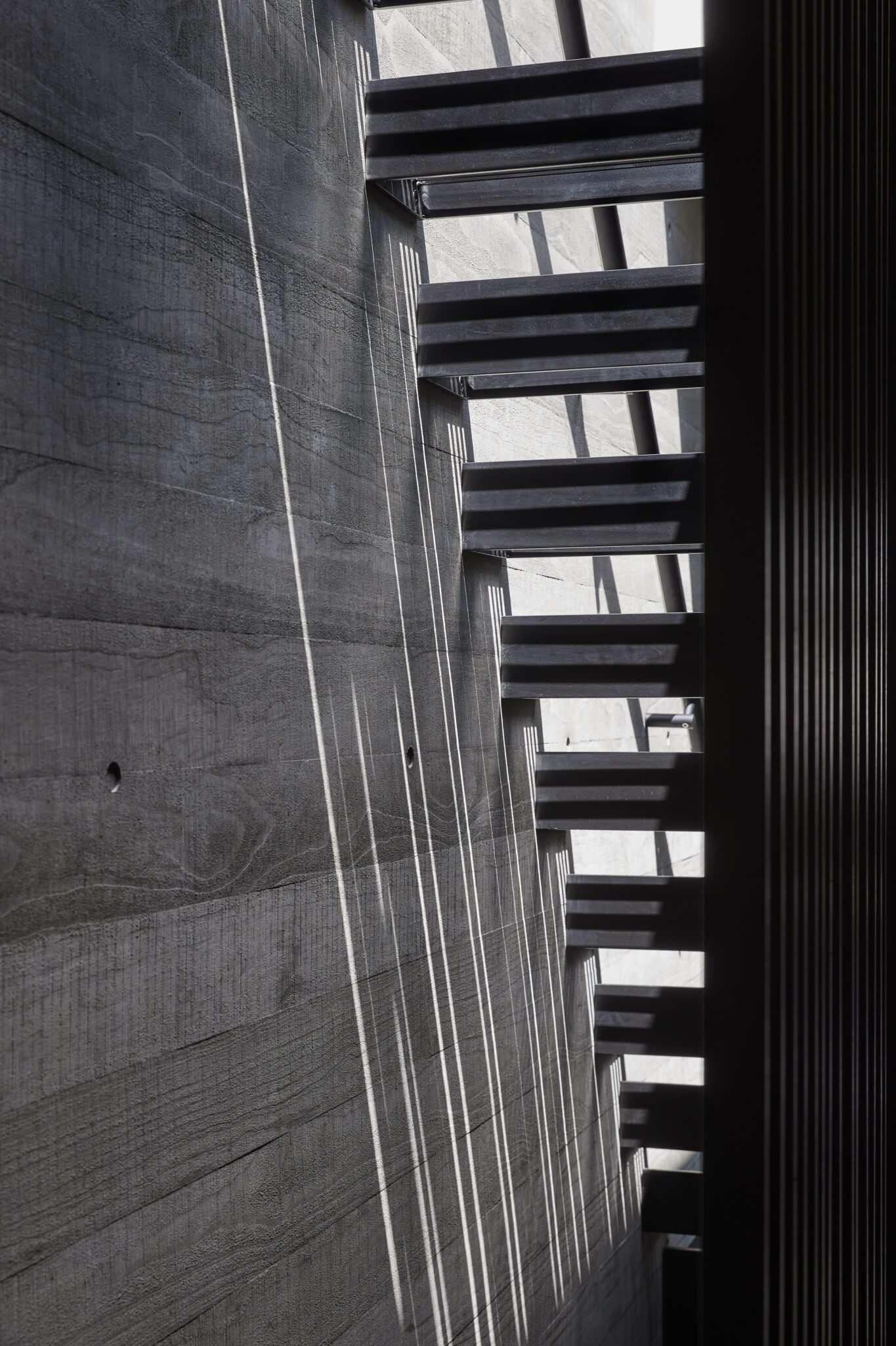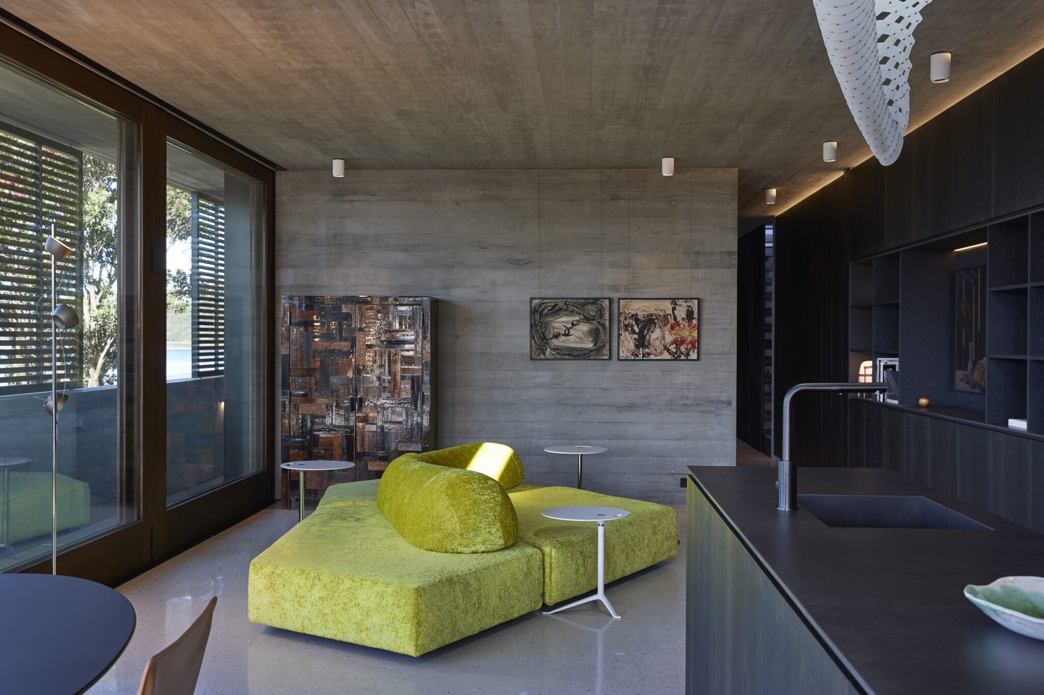 The internal concrete varies between in situ with textural board-formed patterns and polished; there are accents of beautiful rosewood timber, and no surface has been left to chance.