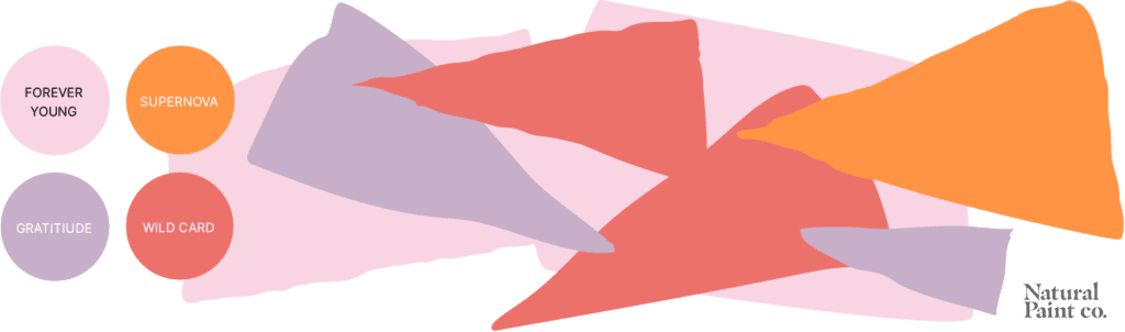 It is a palette of tranquility spanning the immersive hues of Supernova and Wild Card paired with the softer pastel mid tones of Gratitude and Forever Young, capturing a sense of quiet serenity — moments of reflection as a day ends.