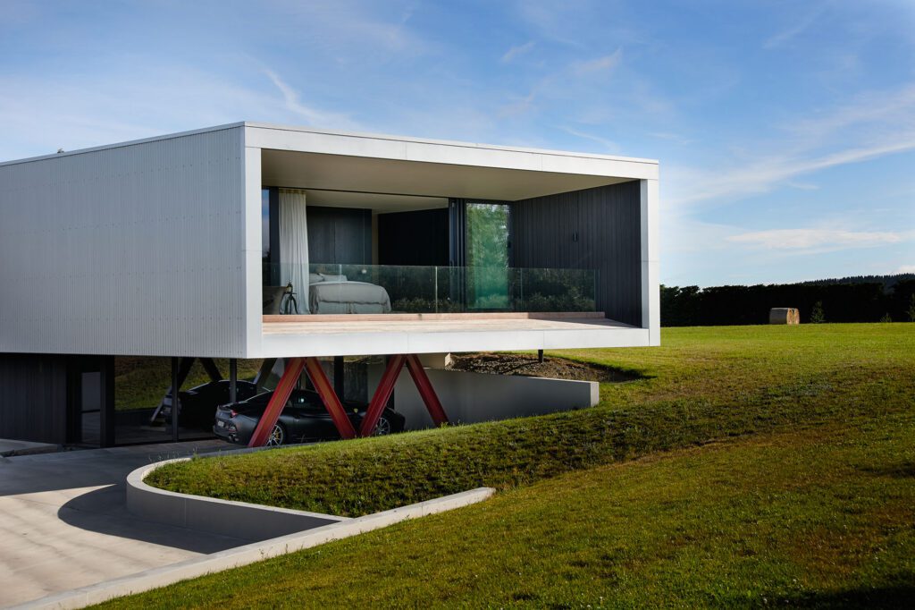 At times, colour was used more boldly — often to highlight architectural structures or express the personality of a home’s inhabitants. Federico Monsalve points to M House by Ponting Fitzgerald Architects, where a vivid red defines the M-shaped steel bracing that holds the house lightly above the Martinborough countryside.