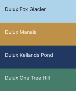 Here, the ocean’s many moods are distilled through tonal gradients — the glacial wash of Dulux Fox Glacier, the vibrant boldness of Dulux Kellands Pond, and the freshness of Dulux One Tree Hill.