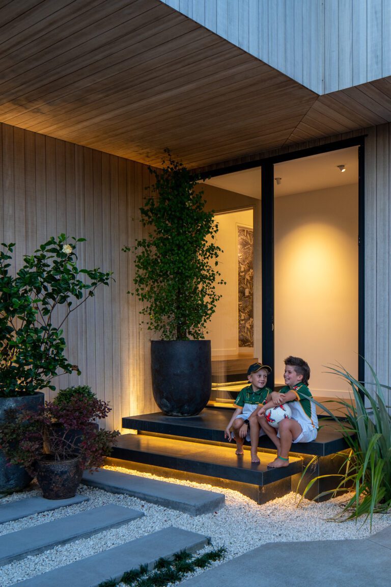 “To the front, it’s all a blank but elegant facade,” explains Lithgow. “The entry is to the side to detract from the busyness of the road.”