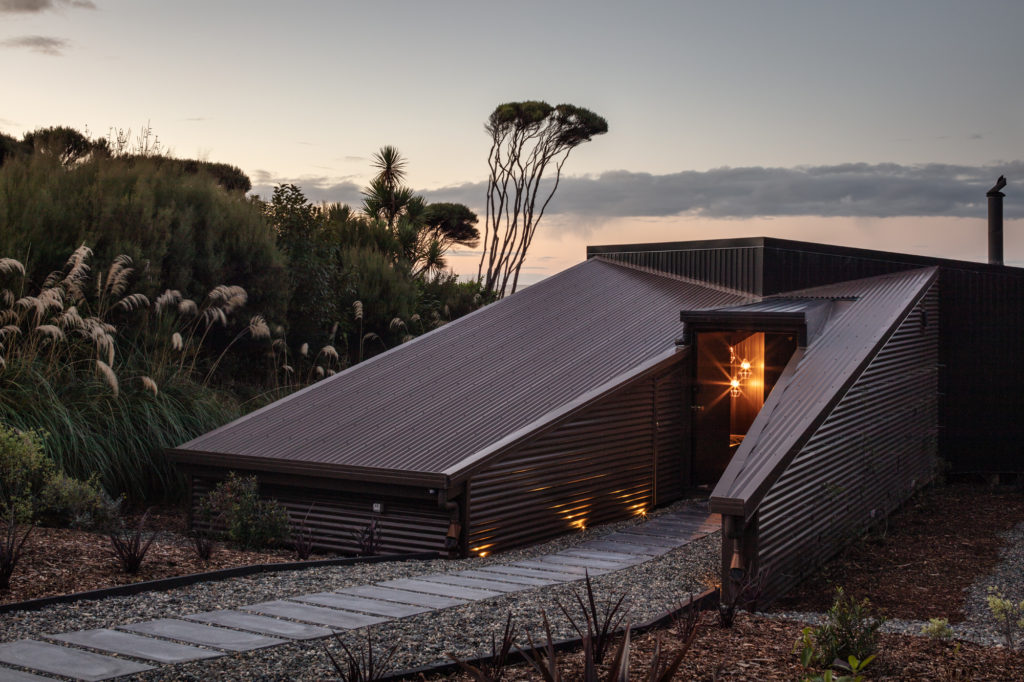 At the bottom of the South Island, halfway between Invercargill and Bluff, this bunker-like holiday home was constructed using Passive House ideology.