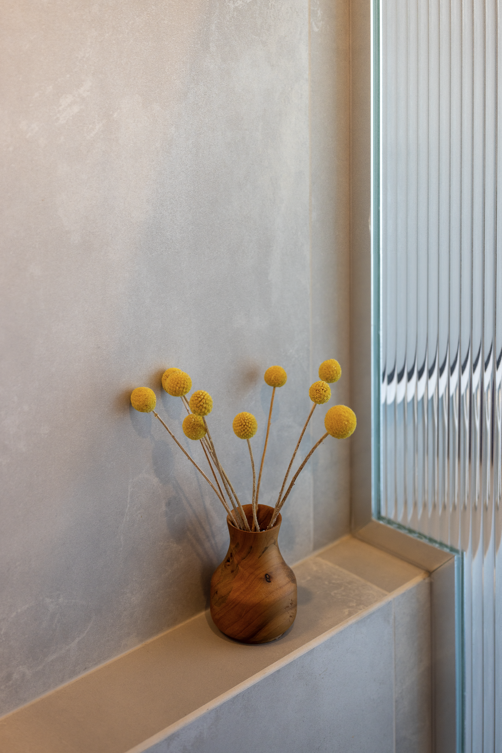 Where they could, Emma and Nick used New Zealand–made products, such as the brass door pulls, made in Auckland, and the pink concrete basin, made in Queenstown.