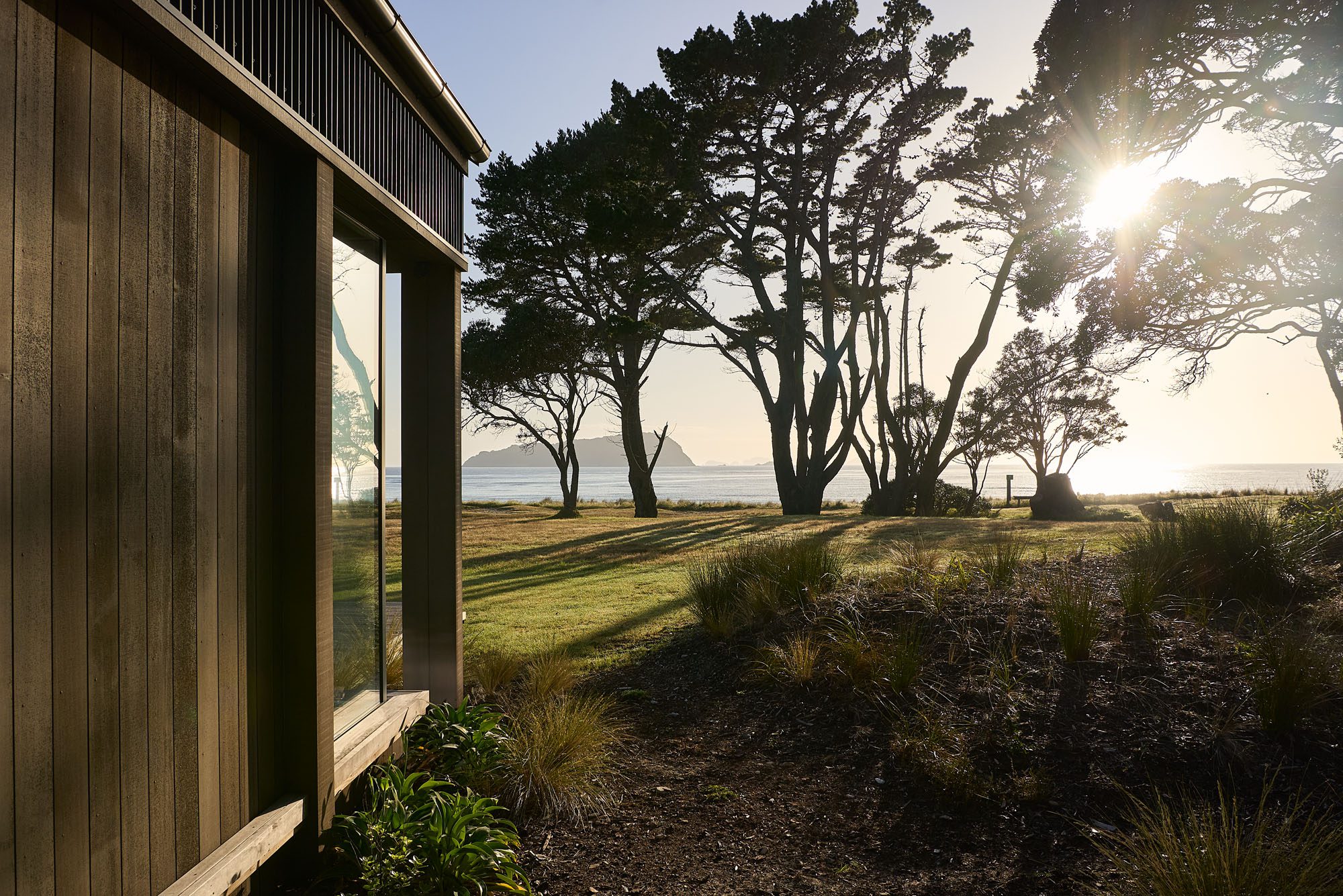 “The initial design was about creating these glazed corner elements, where you sat raised above the landscape, and bringing the Pauanui dune into the house.”