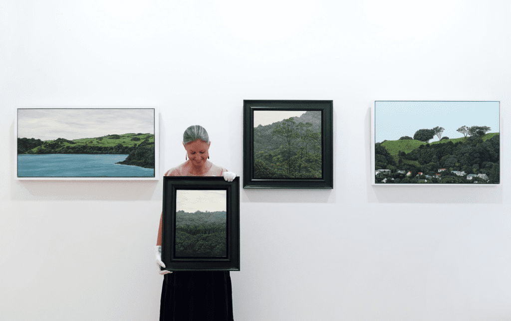 The meticulously detailed realism of Sara’s work invites the viewer to engage with the layered landscape, which is presented almost as if it were a portrait or the protagonist in a novel. Within the detail emerges an innate character — perhaps experienced more vividly by those who have inhabited, or have links to, Tāmaki Makaurau. Sara’s Silver Linings works were recognised at national art awards last year, with her painting O te Ngahere receiving both the Michael Evans Award for a Figurative Work and the People’s Choice Award at the 2024 Walker & Hall Waiheke Art Awards, and Evergreen winning the People’s Choice Award at the NZ Painting and Printmaking Awards.