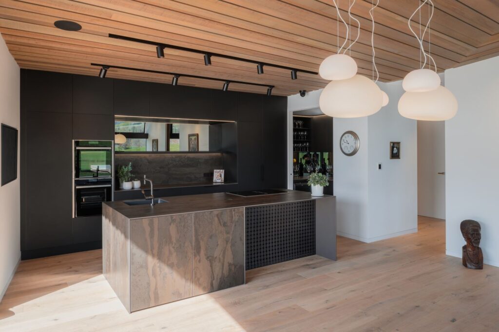 Specified in this kitchen in Wings Over Water house by Kamermans Architects, is the NEFF Slide&Hide Oven with a unique feature – the fully disappearing oven door. From the same range, the NEFF Flex induction cooktop with downdraft ventilation is every bit a cooktop allowing for placement in an island and clear view to the room beyond.