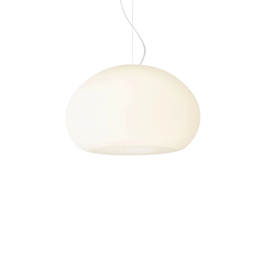 The FLUID pendant lamp is inspired by a resting drop of water. The lamp’s soft round shape is enhanced by its frosted matte glass surface and perfectly matches its warm cosy light. The lamp can be hung as a single feature alone over a table or mixed in clusters with other small and large FLUID lamps to create the desired ambience. Available in two sizes 23cm and 42cm.
