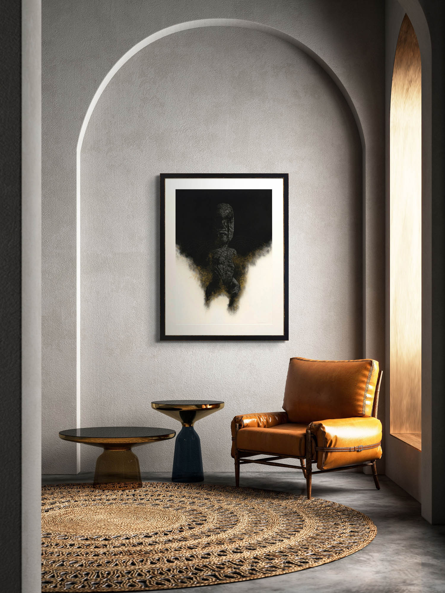 We are delighted to share this poignant, engaging, and captivating work from Gareth Barlow’s ‘Aranga’ series, ‘Shadows Of The Ashes’. Created in acrylic and charcoal on paper, includes charcoal from the burnt taonga the work is based on.