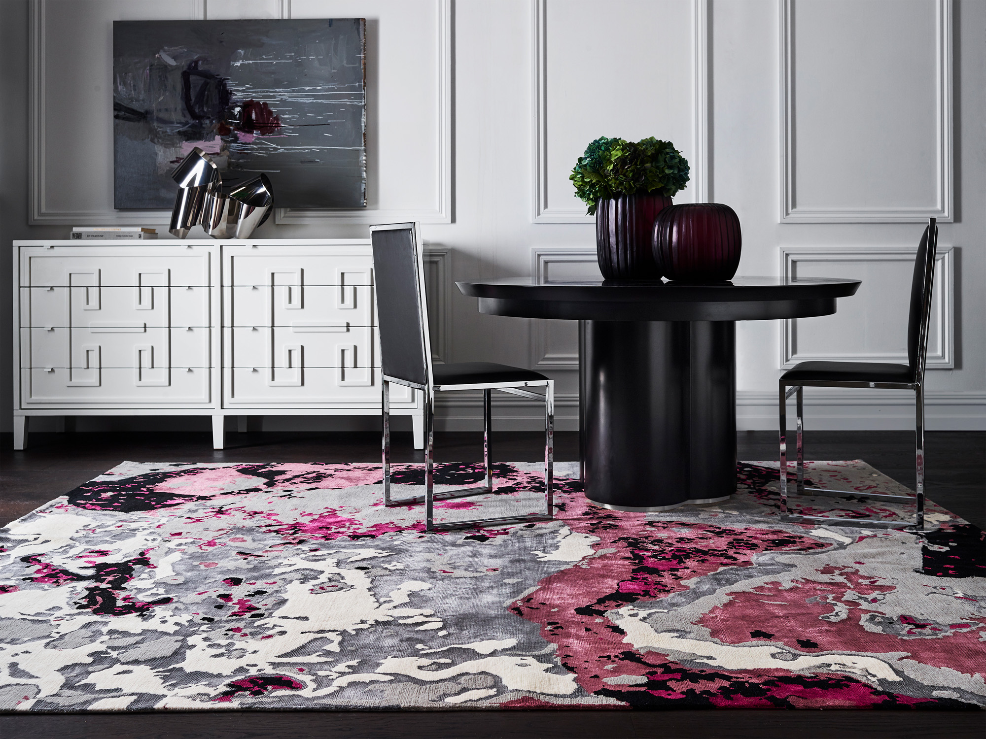 Greg has extended his passion for pattern, line and colour into six rug collections and two Axminster carpet collection. Each collection features Greg’s signature aesthetic, but explores different applications – from sharply geometric to flowing nature-inspired designs. Over a decade of close collaboration has created some of Designer Rugs most enduring and popular designs.