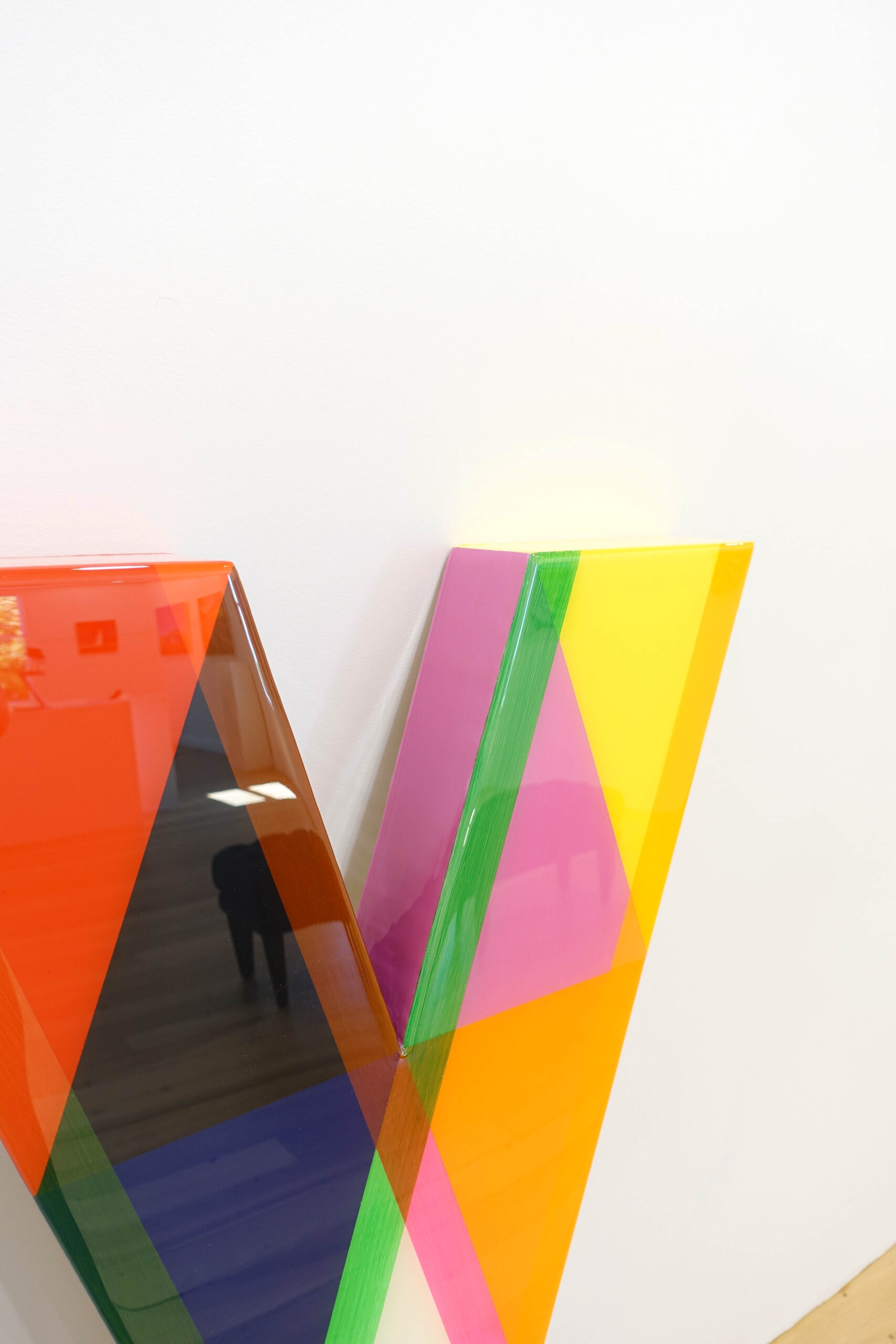 Hannah‘s practice is founded on experimental methodology and a keen interest in the scientific properties of paint and colour. Her studio research has led her to working with various forms and experimenting with resin, varnish, acrylic, and industrial additives to create large-scale wall mounted sculptures.