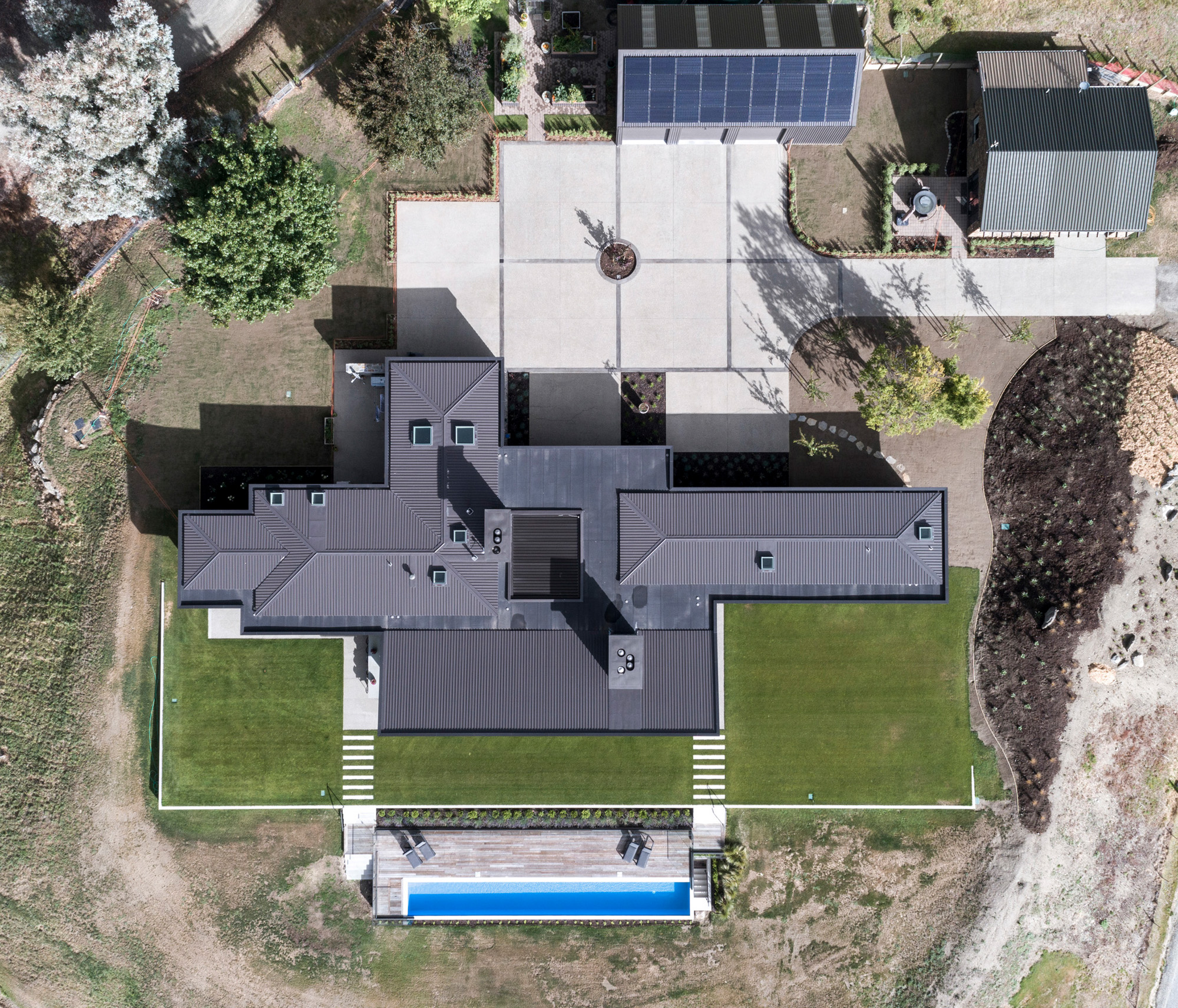 A prolific spread-out home that dominates in size yet masks itself into the surrounding area with its intentionally selected colours.