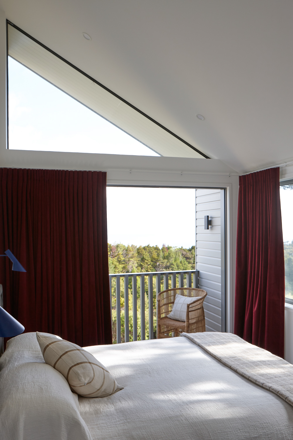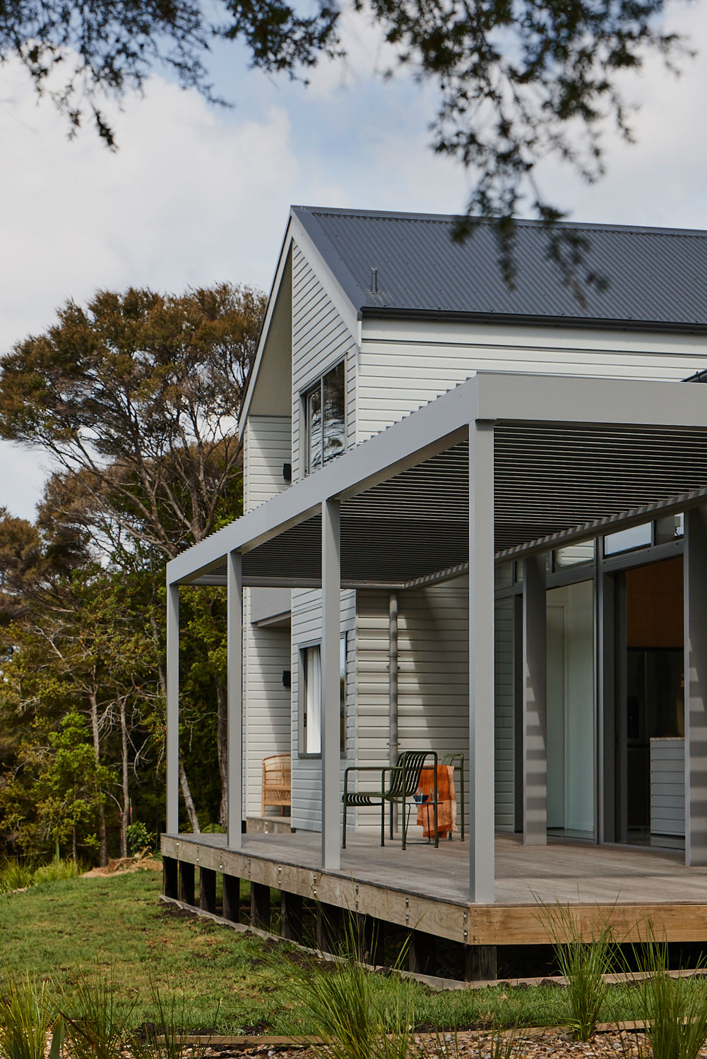 Designed for a couple who work in academia, this versatile home in Waipu has bookends on either side of a large central living space. At one end, a private area incorporates a large office (from which to work from home) with the main bedroom retreat (with bathroom and walk-in wardrobe), media room, and laundry.