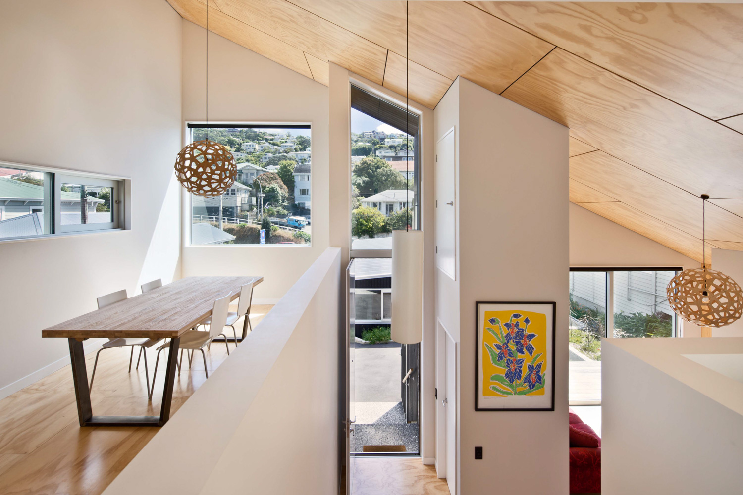 The houses open up to the north as much as possible along the length of the site onto outdoor patios, a linear deck, and up to the terraced garden.