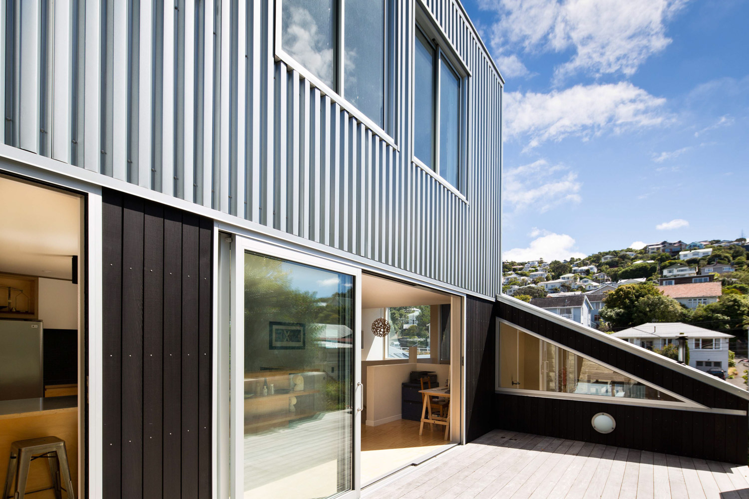 This project comprises of two new homes, one is a larger house for the family of four and the other smaller for the grandmother. Set on a very narrow and steep site, close to the Brooklyn community shopping area, this project was the result of demolishing an existing dilapidated dwelling. They are energy-efficient houses with both a low impact on both the environment and neighbourhood and breathe new life into this previously unloved site.