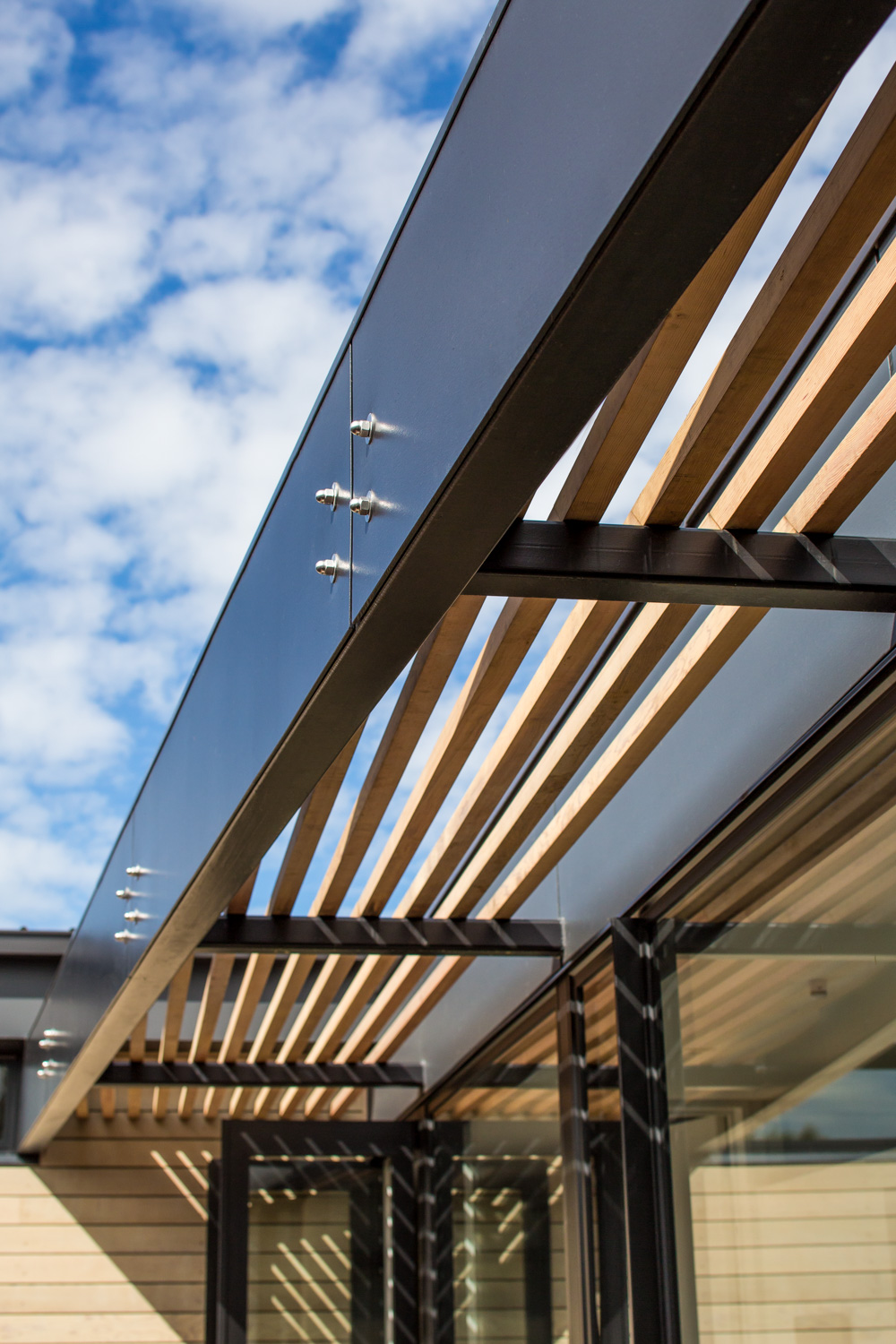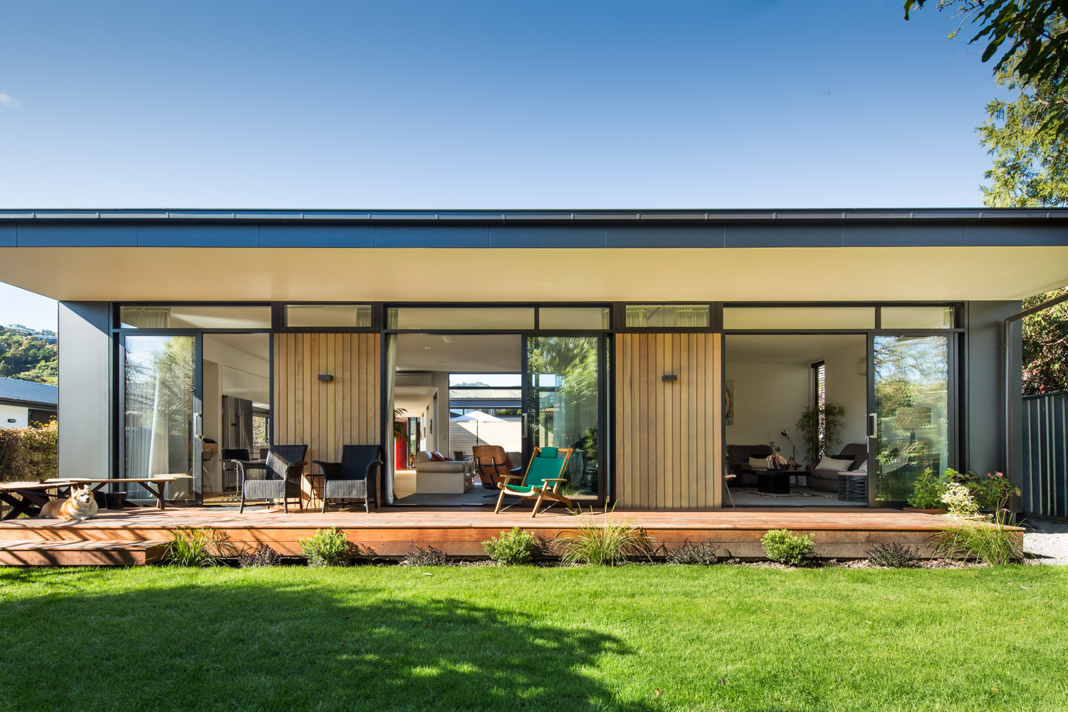 This modern family home was a rebuild of an award-winning 1970s house; one of its objectives was to reinterpret and modernise the design principals of the original building. Taking queues from the original plans, the new house features a dramatic promenade entrance. This passage reveals the heart of the home, a private central courtyard around which the circulation and living spaces are arranged to encourage enjoyment of sunlight, natural ventilation, and views of the port hills. Ribbons of glazing positioned at ceiling level filter light into the home and maintain a connection between the well-established garden and the landscaped central courtyard. Elegant compositions and natural materials feature throughout; from the horizontal roof bands, oiled cedar weatherboards and raw concrete blocks of the street façade to the hardwood decks and glass framed cedar walls located at the rear and centre of the building, all contribute to the warm atmosphere and generous living spaces of the home.