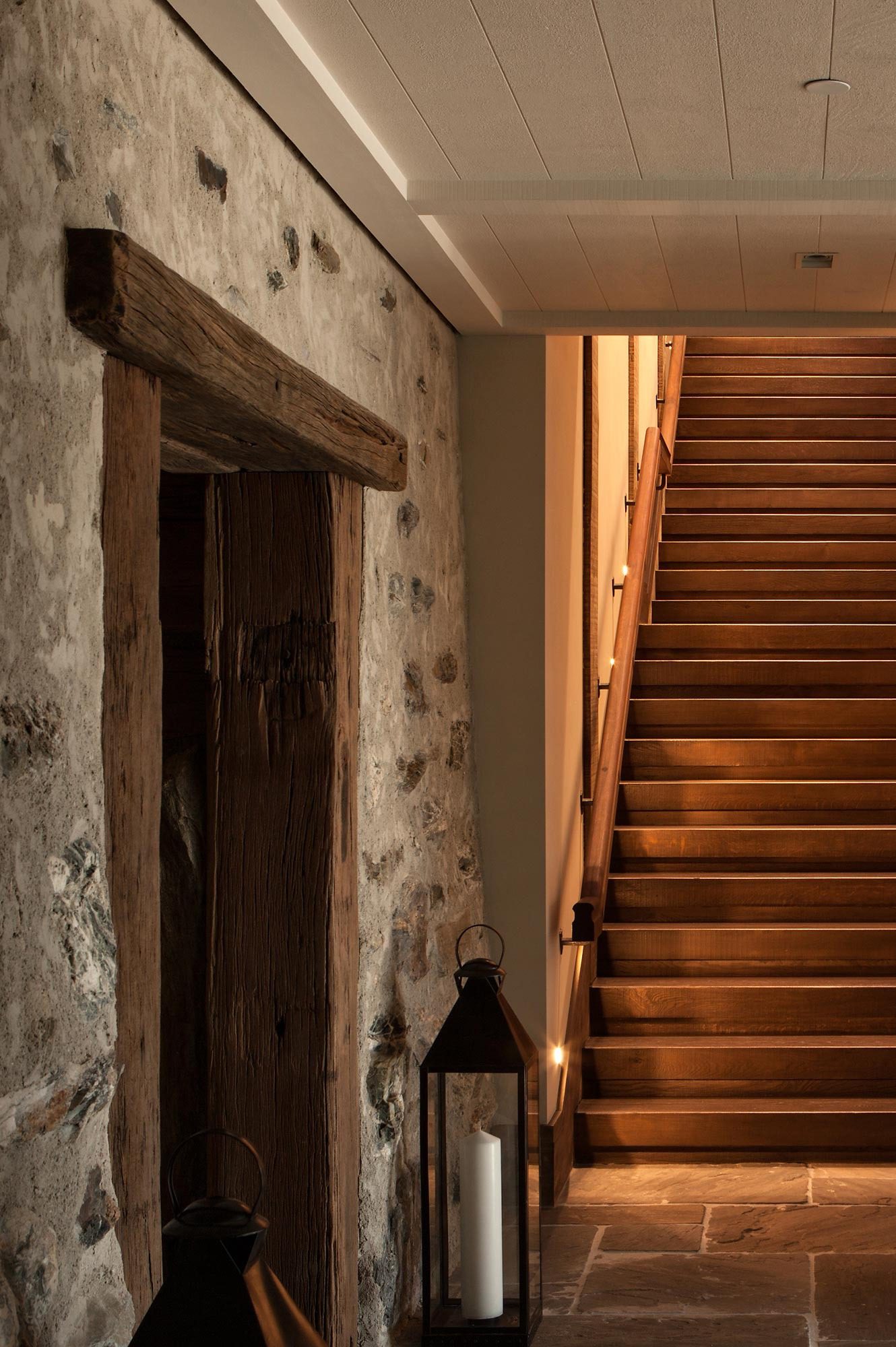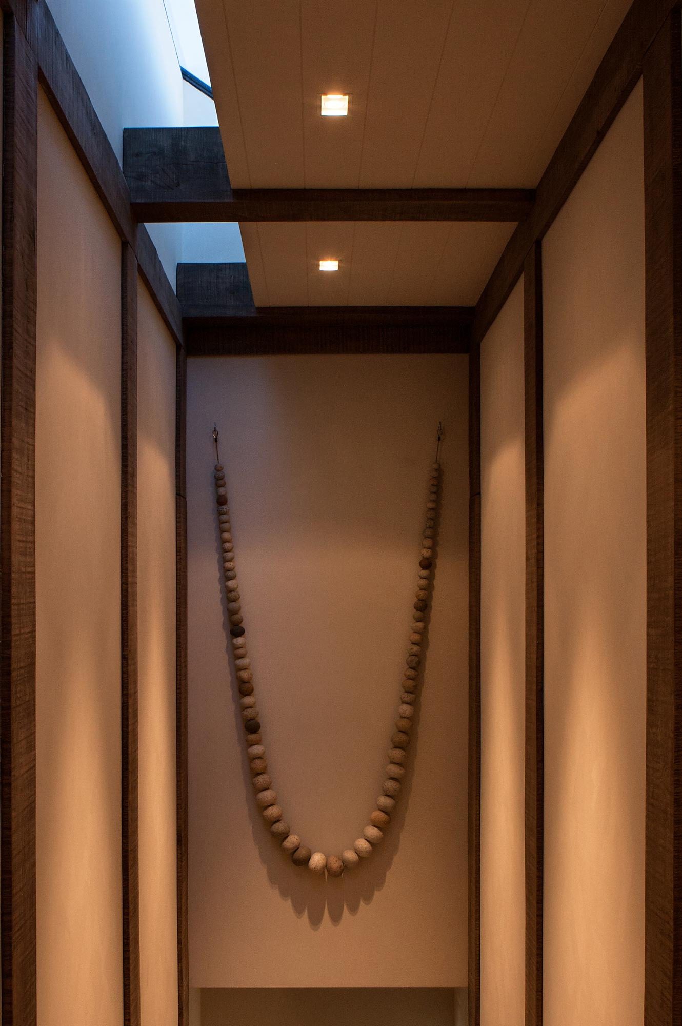 A simple palette of zinc and stone wall cladding, finished in the traditional method of plastering, are employed to integrate the materials with the colours and textures of the environment. This house provides a haven and retreat for a busy and active family.