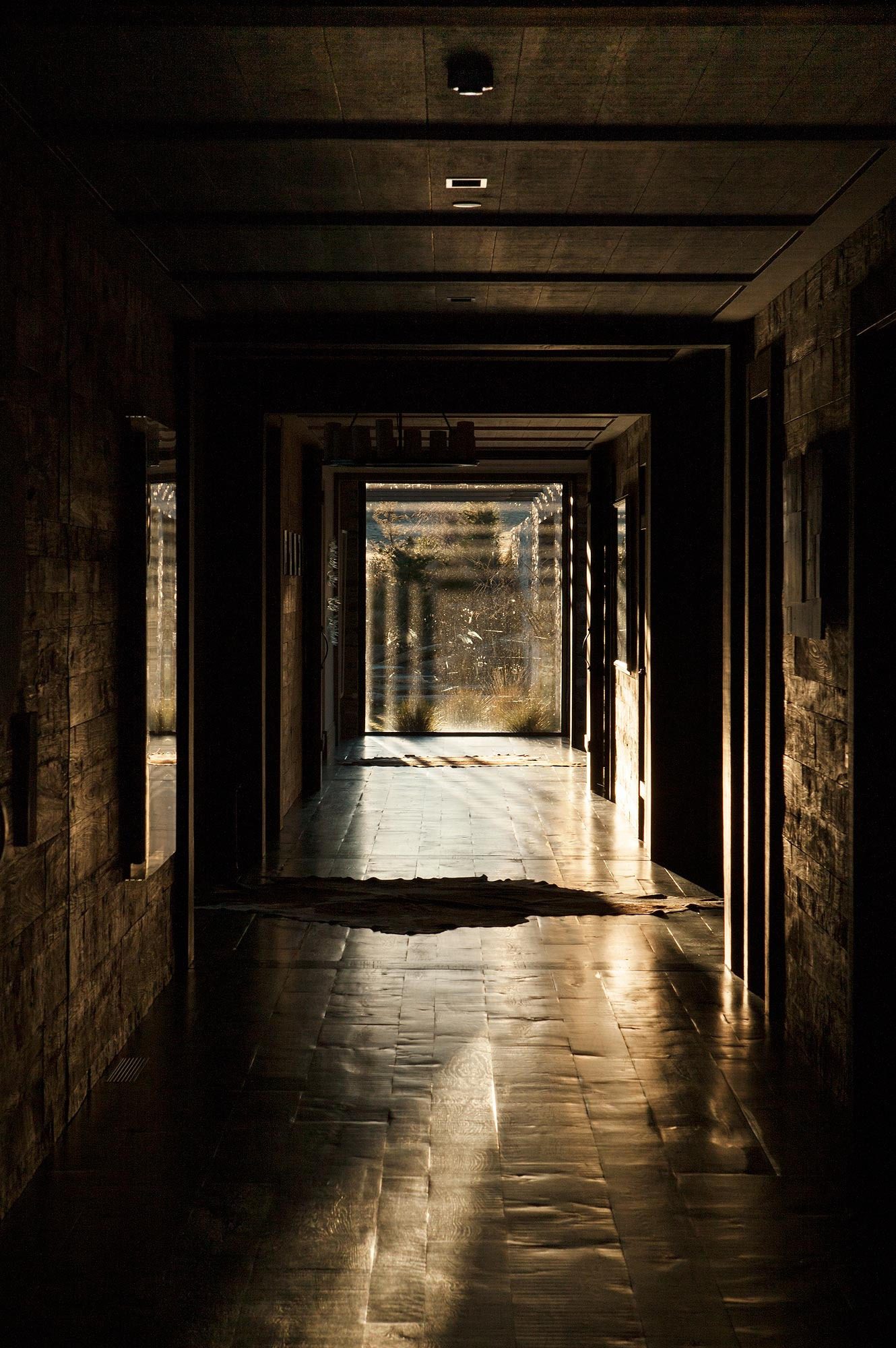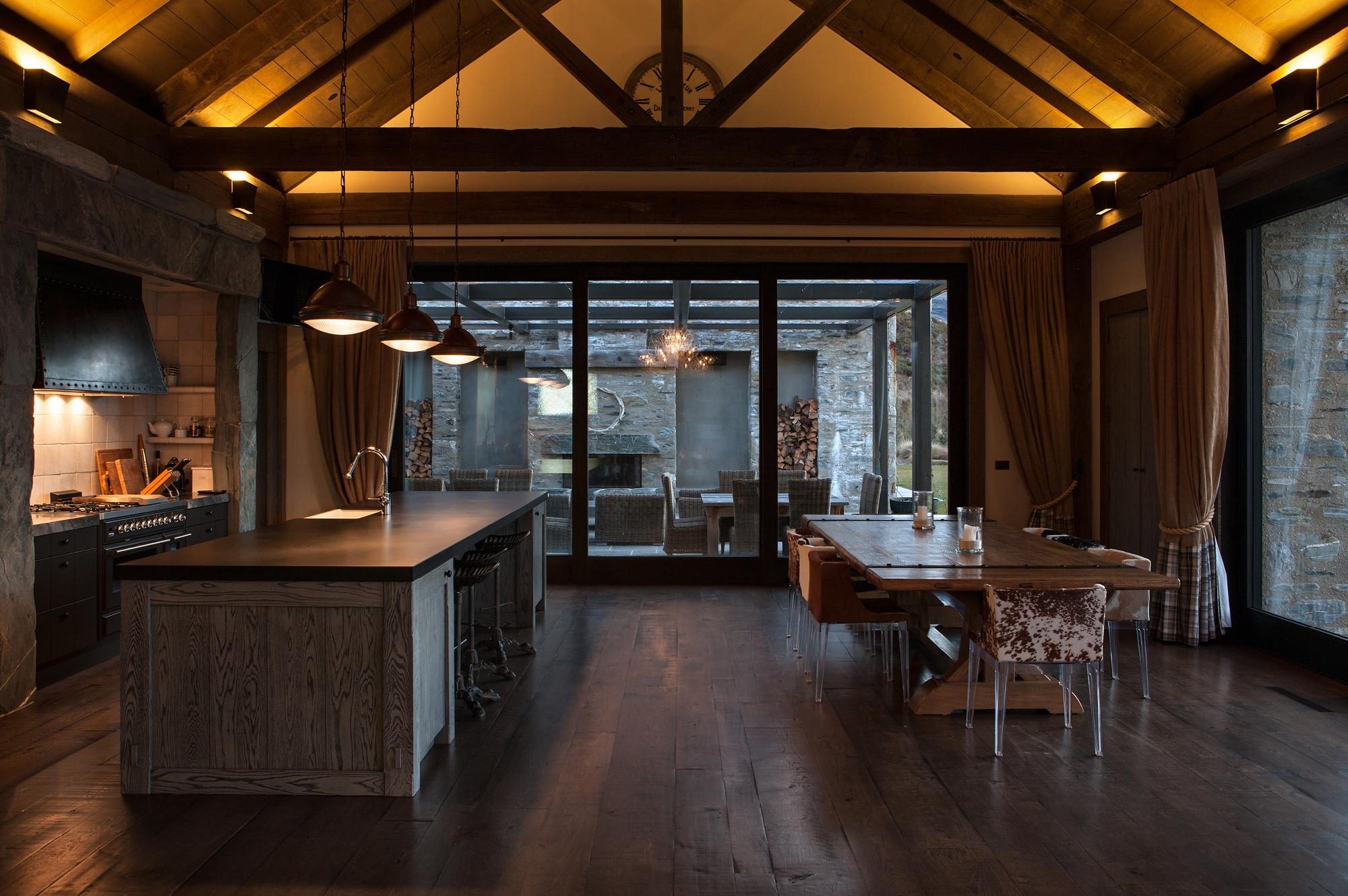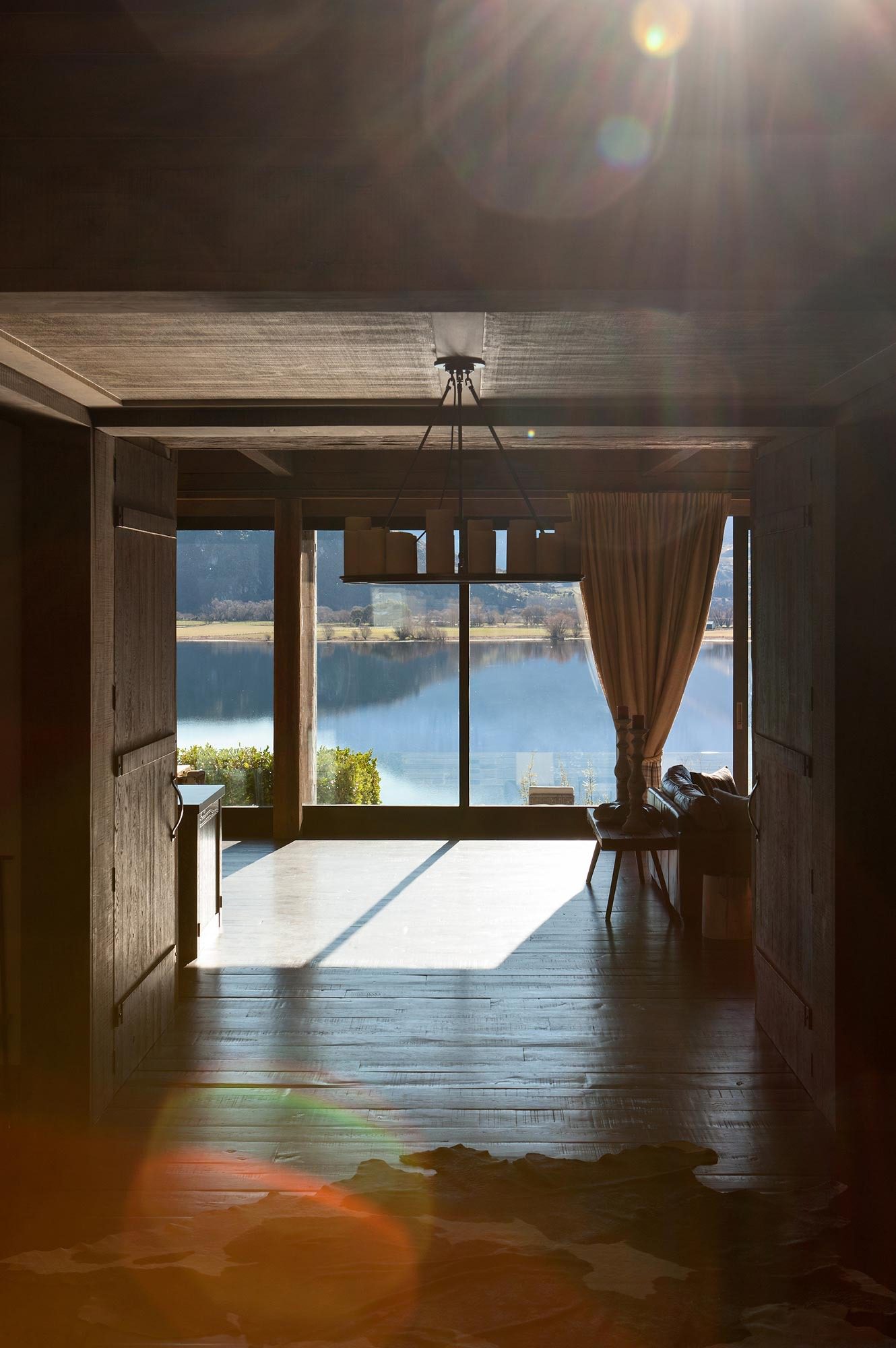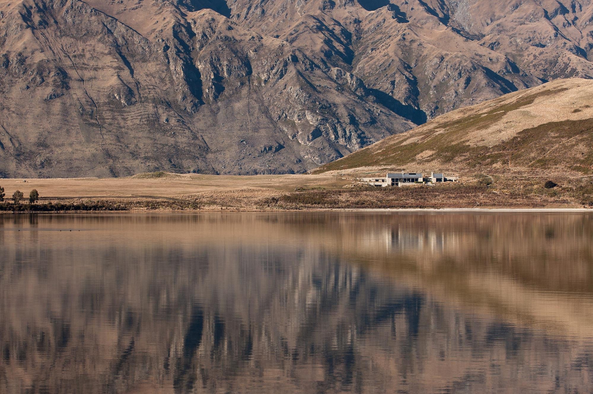 This mountain house is situated in a stunning and remote location, facing up to the Southern Alps and Mt Aspiring. Due to the sensitive zoning and location of the land, a large area of the house was buried to ensure that the visual impact of structure is sympathetic with the surroundings. A walled arrival court creates a sense of calm from the vast scale of the surrounding landscape. This provides shelter and intimacy before entering the house.