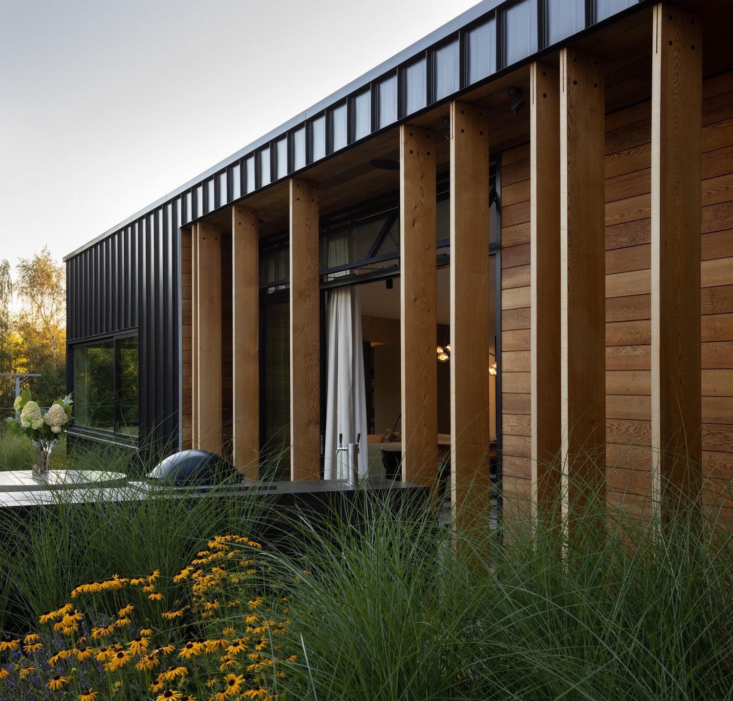The structured North courtyard and entertaining area open to the view across the trees to the mountains beyond. A path connects the cottage and the house. The cottage’s proximity allows for privacy and connection, leaving large open spaces beyond to retain the park-like, rural setting.