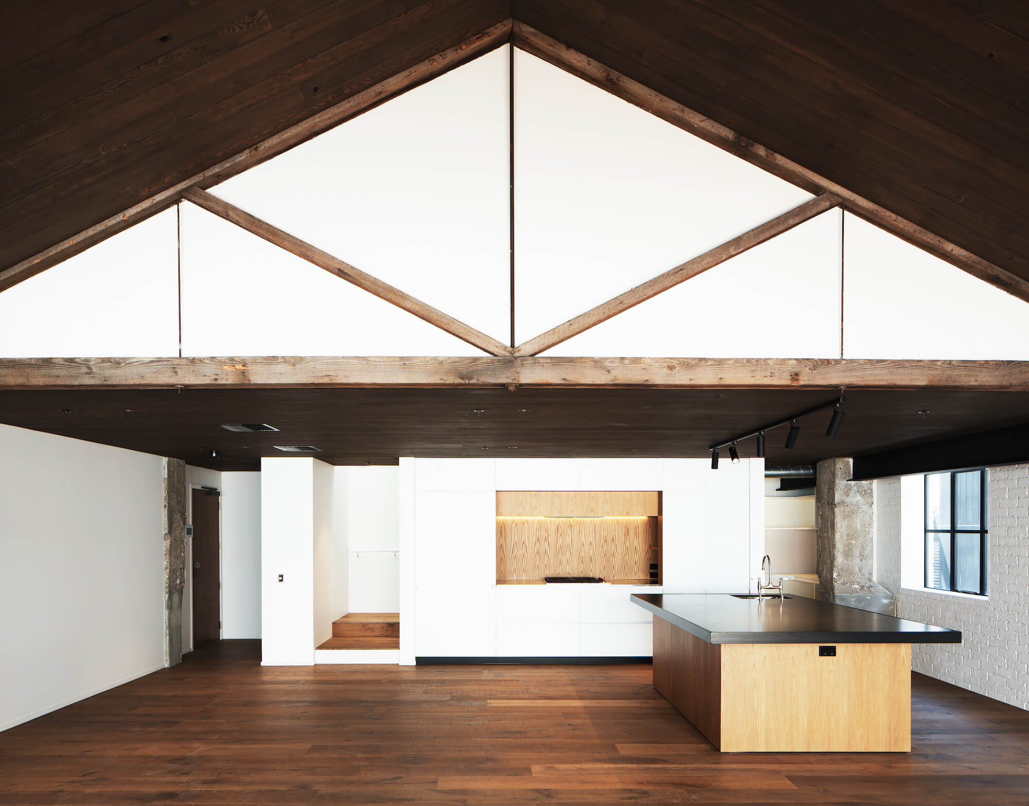 This project began with the dilapidated old Model T assembly building from which the lofts have been fashioned.