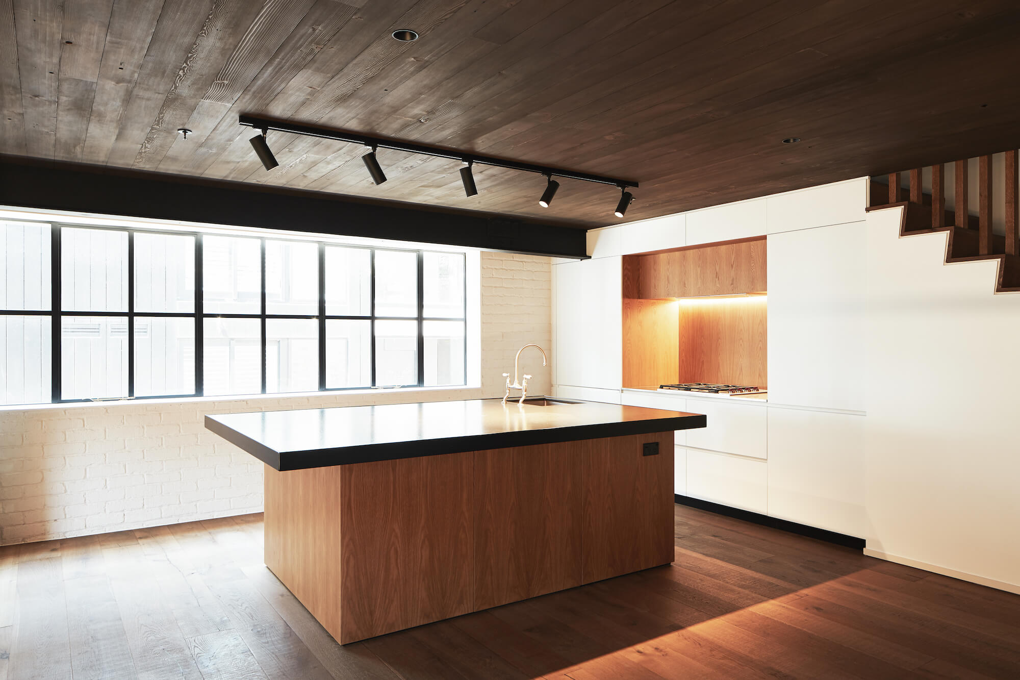 The irregularly shaped footprint, absence of outlook and the limited opportunities to bring daylight into the building led to a scheme of only eight Lofts, each unique in their layout. Every loft seeks to augment a balance of privacy and interior atmosphere with contained outdoor living; elegance and grace with robustness and integrity.