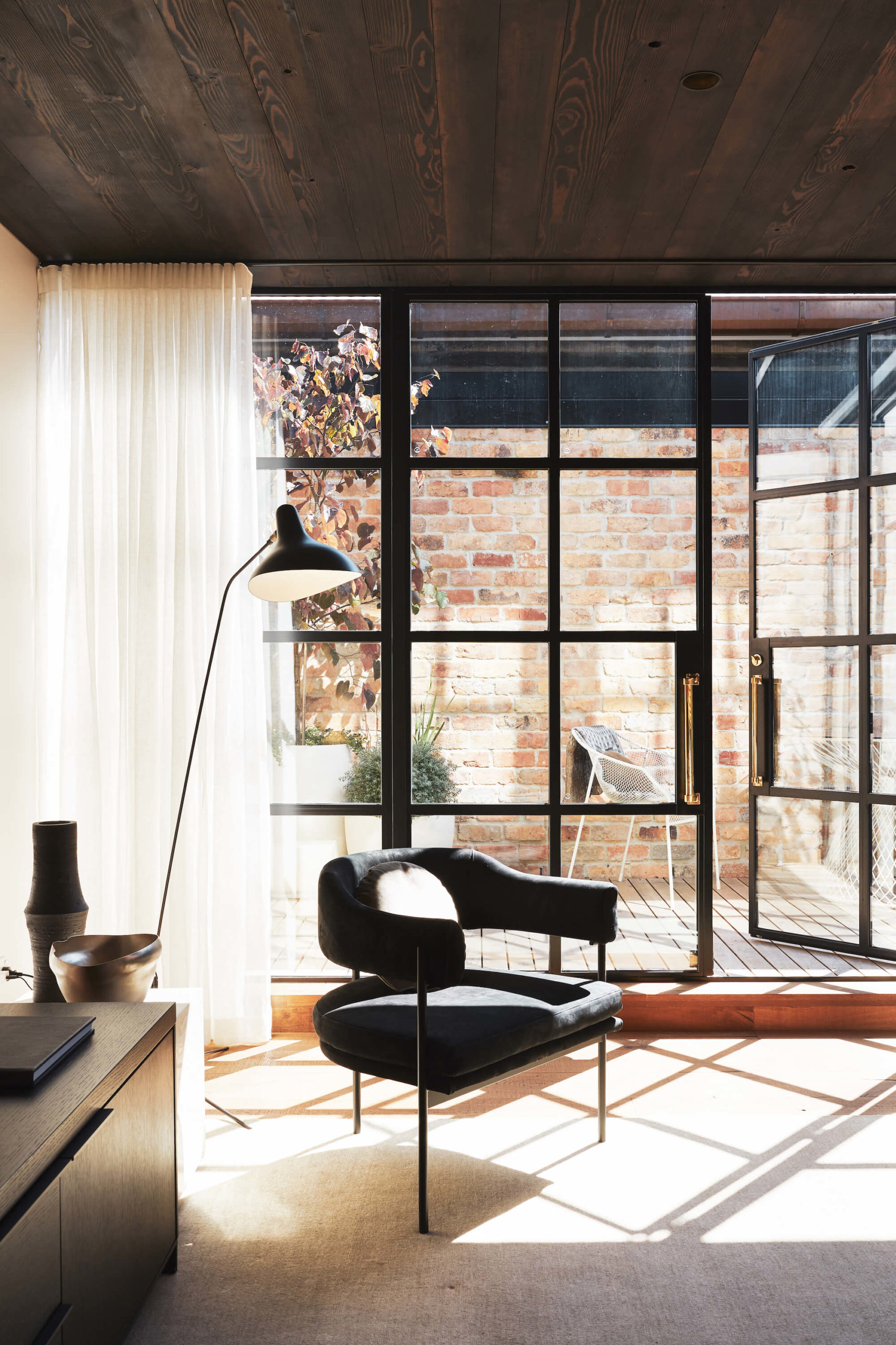 Recycled brick, oil-rubbed timbers and finely gridded windows seek to reintroduce integrity to the long-bastardised shell.
