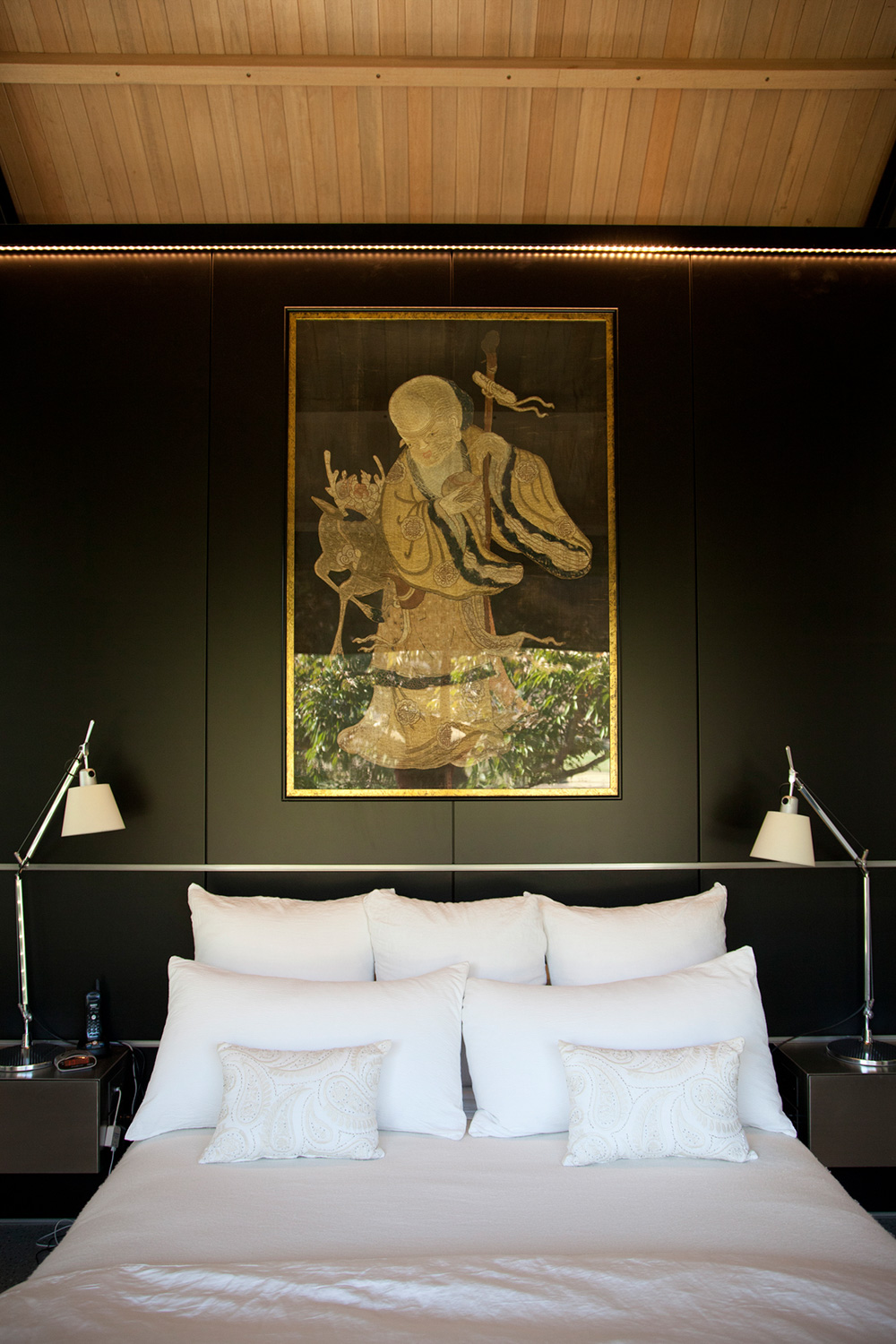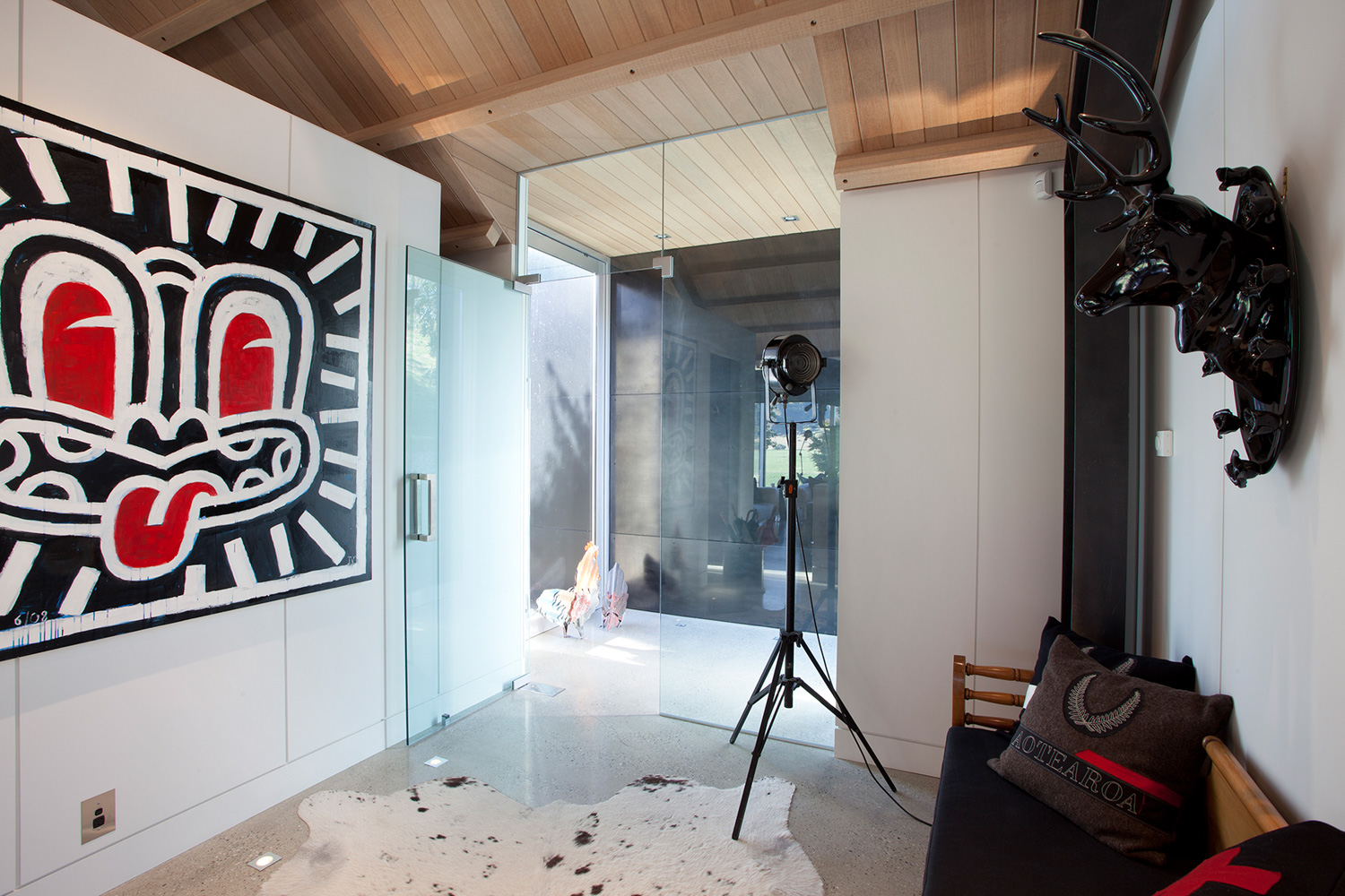 Openings have been increased in scale to frame picturesque views, which are complemented by a series of sculptural works in the landscape. The addition of a new loft space above the existing garage provides an alternative bridged connection to the landscape and private guest quarters which are semi-connected to the main house.