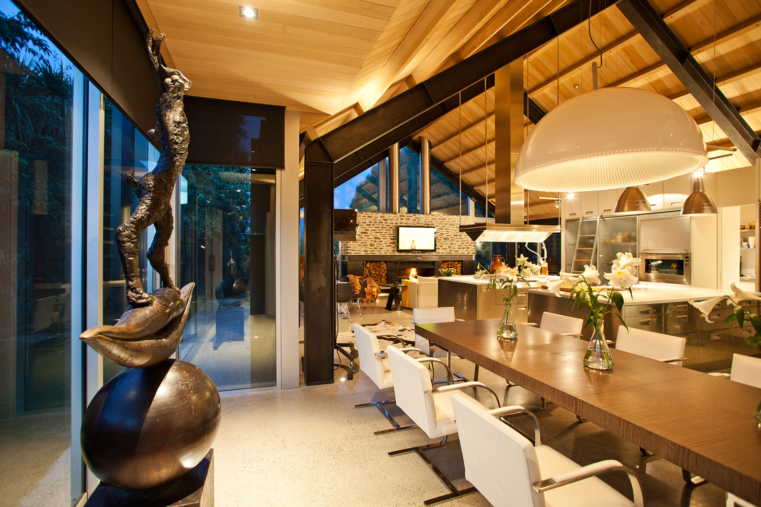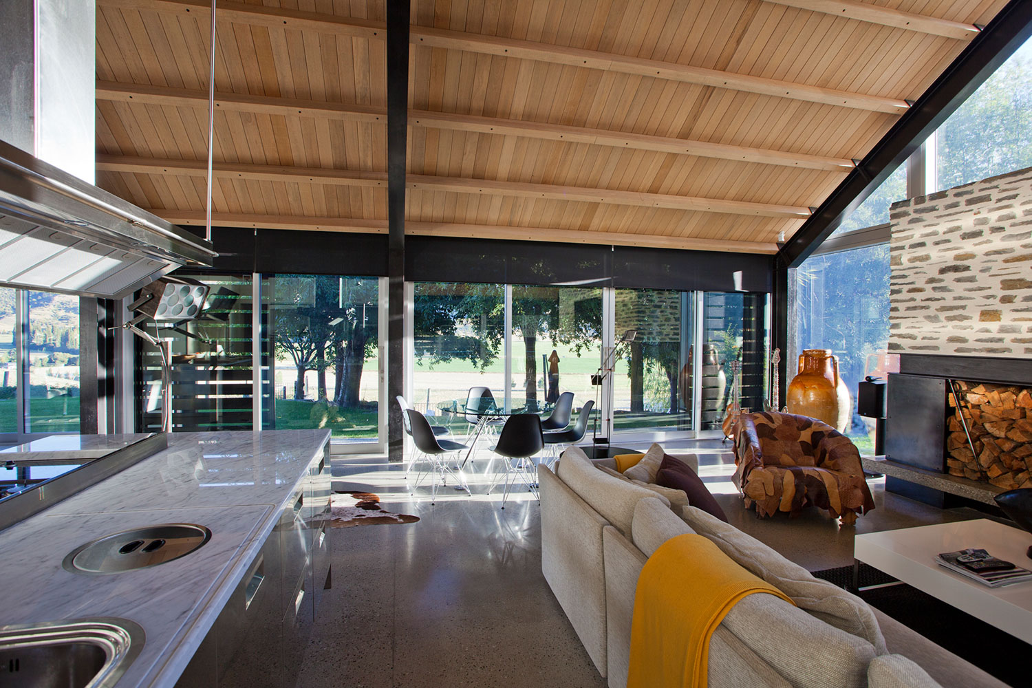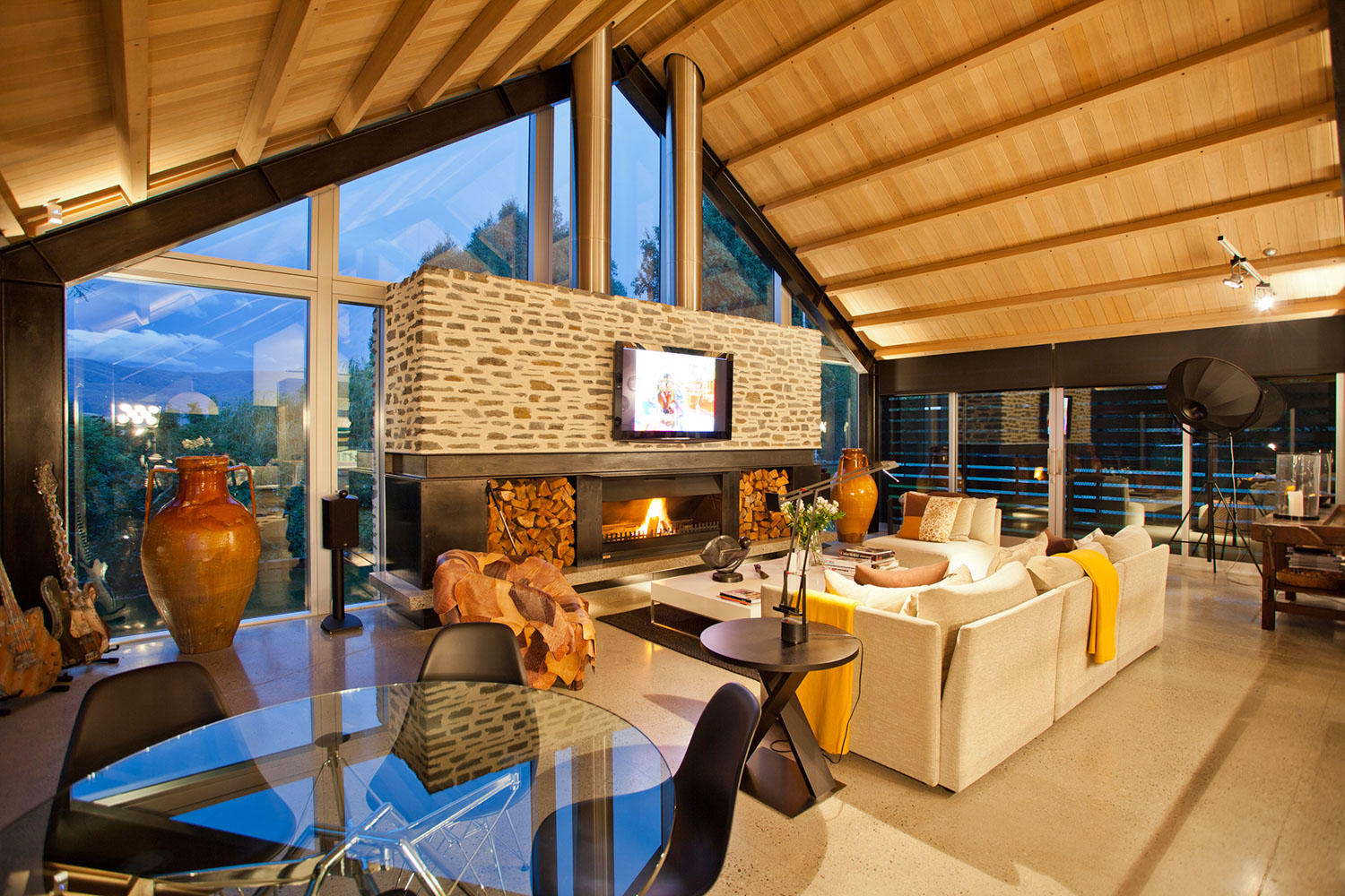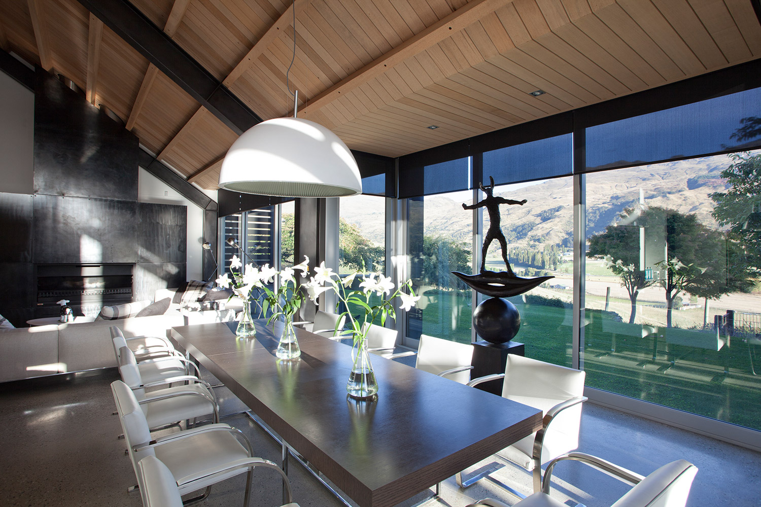 This rural Queenstown project was a dramatic reimagining of an existing home. The building was almost completely refinished, with the addition of a new living wing and an extended bedroom wing, both of which respond to the existing building form. The house is rural in nature, with crisp metal pitched roofs and a combination of rustic timber and stone cladding.