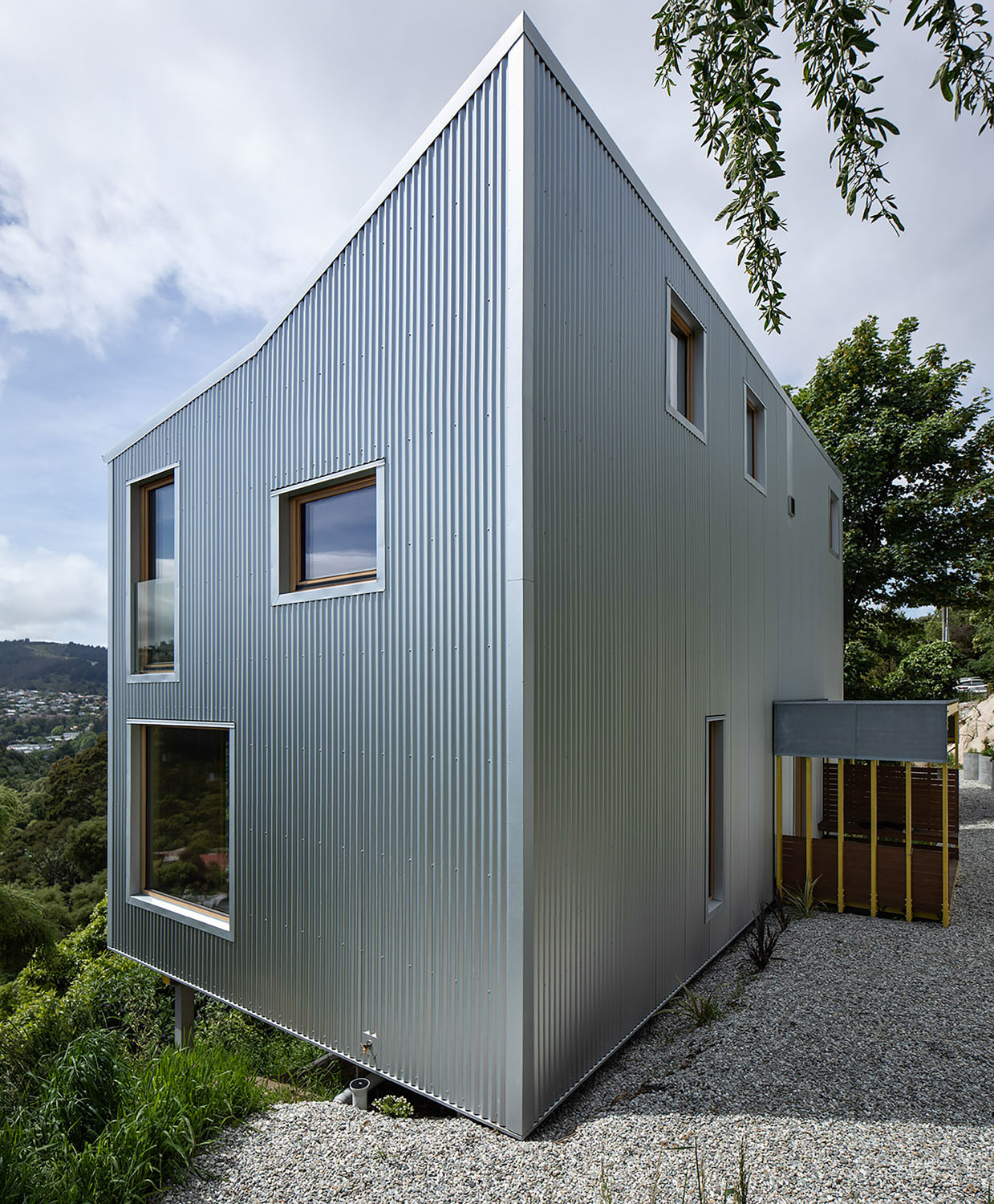 ‘This resolutely internal house, sited on a steep and marginal site, successfully fulfills its purpose as an urban retreat. Providing compact but comfortable accommodation for four people, the small dwelling is a timely exercise in sufficiency and the optimisation of resources and opportunity. Designed as an efficient thermal cocoon, the house also serves as a treehouse, connected through its clever positioning and carefully framed views, with a wider view and more immediate surroundings, especially the kōwhai tree for which it is named. The house, which was designed for the architect’s own family, is an intriguing exercise in self-experimentation – a little box of inbuilt happiness.’