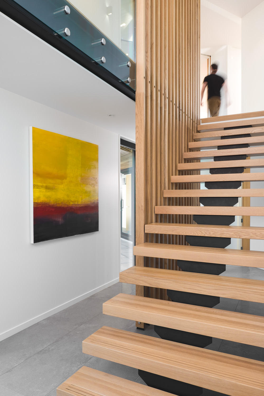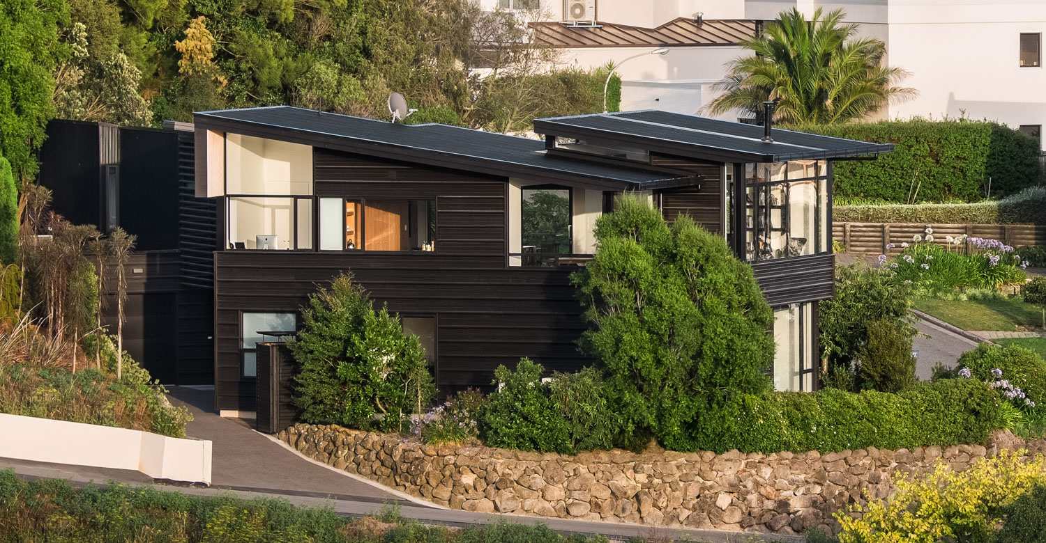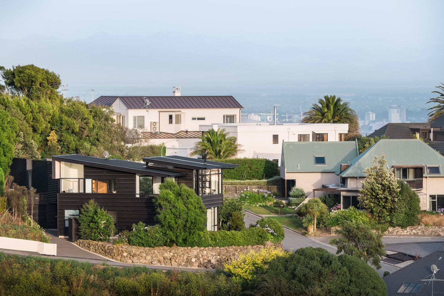 “A confident rebuild” is how the jury described this house, and they noted it was one positive outcome from the earthquakes. The black cedar and steel exterior is juxtaposed with the light and airy feel of the interior.