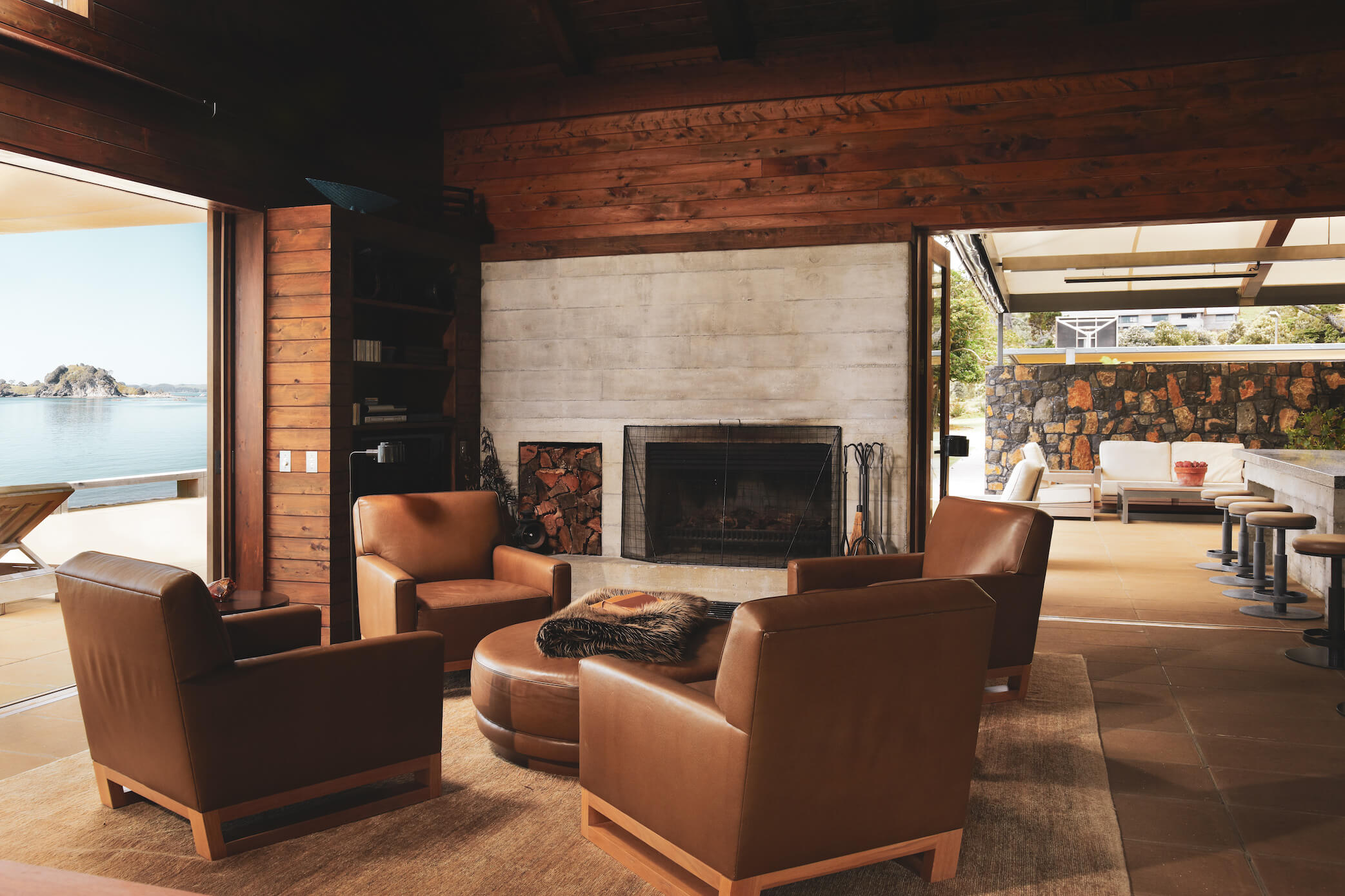 The interior aesthetic is ‘mid-Pacific’ with large scale furniture and clearly defined by interior space and as with the other Northland houses, the materials are selected to avoid maintenance and to weather softly becoming part of the seashore.