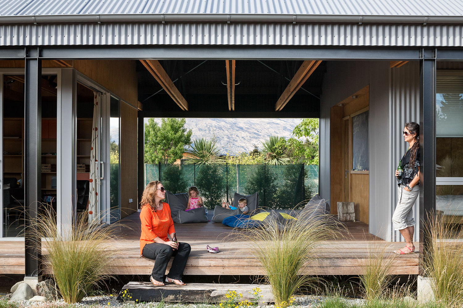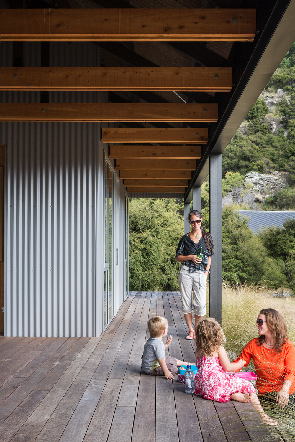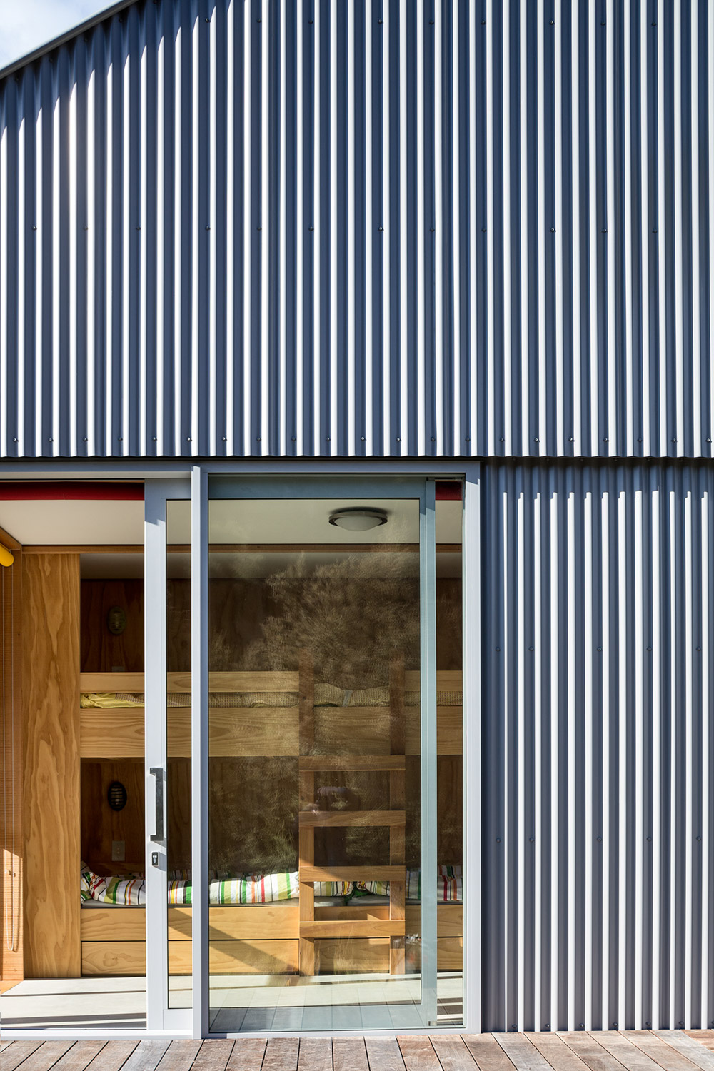 The client, a relative of the architect, responded to this natural beauty, which includes views over neighbouring houses to the stunning mountain vistas beyond, and selected the site as the location of a family crib to be used for both winter and summer recreation. The site provided an opportunity reminiscent of camping, an expanse of grass and bare land on which to pitch the “tent” and shrubland that offers the potential of individual secluded camping spots located within the kanuka. A base camp for the family.