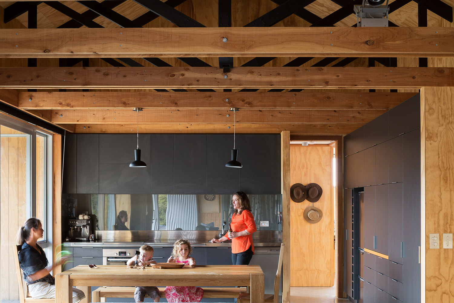 In keeping with this vernacular language, interiors are simple and robust, with material textures expressed and practical joinery elements forming a playful, yet functional, internal architecture fully connected to its surroundings.